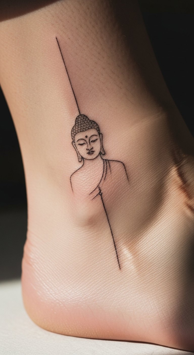 Minimalist Buddha Ankle Tattoo
