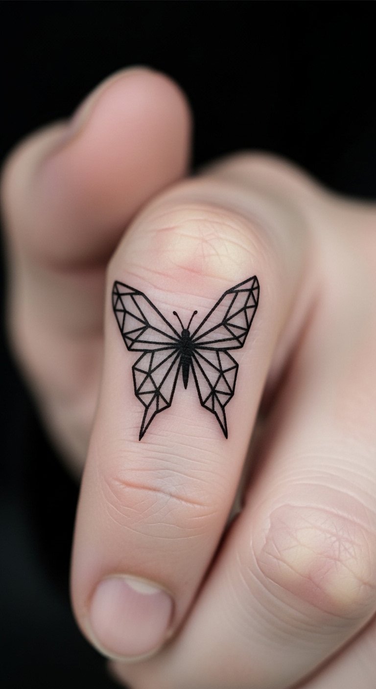 A geometric butterfly on your little finger turns wings into modern shapes, like triangles and squares. This keeps the design edgy but simple. Chunk it: Straight lines for structure. Save by using graph paper from home to plan. Look for geometric experts at budget studios. Keep it black and white. Tip: Draw grids on your finger with a pen. Spot it on the finger’s tip for a fun accent. Add angles: Mix in a circle with your own sketches. Take affordable steps to get it done.