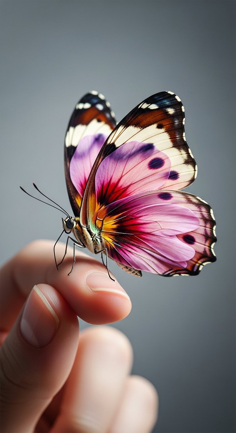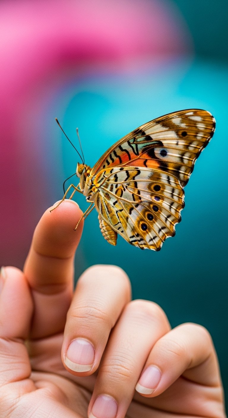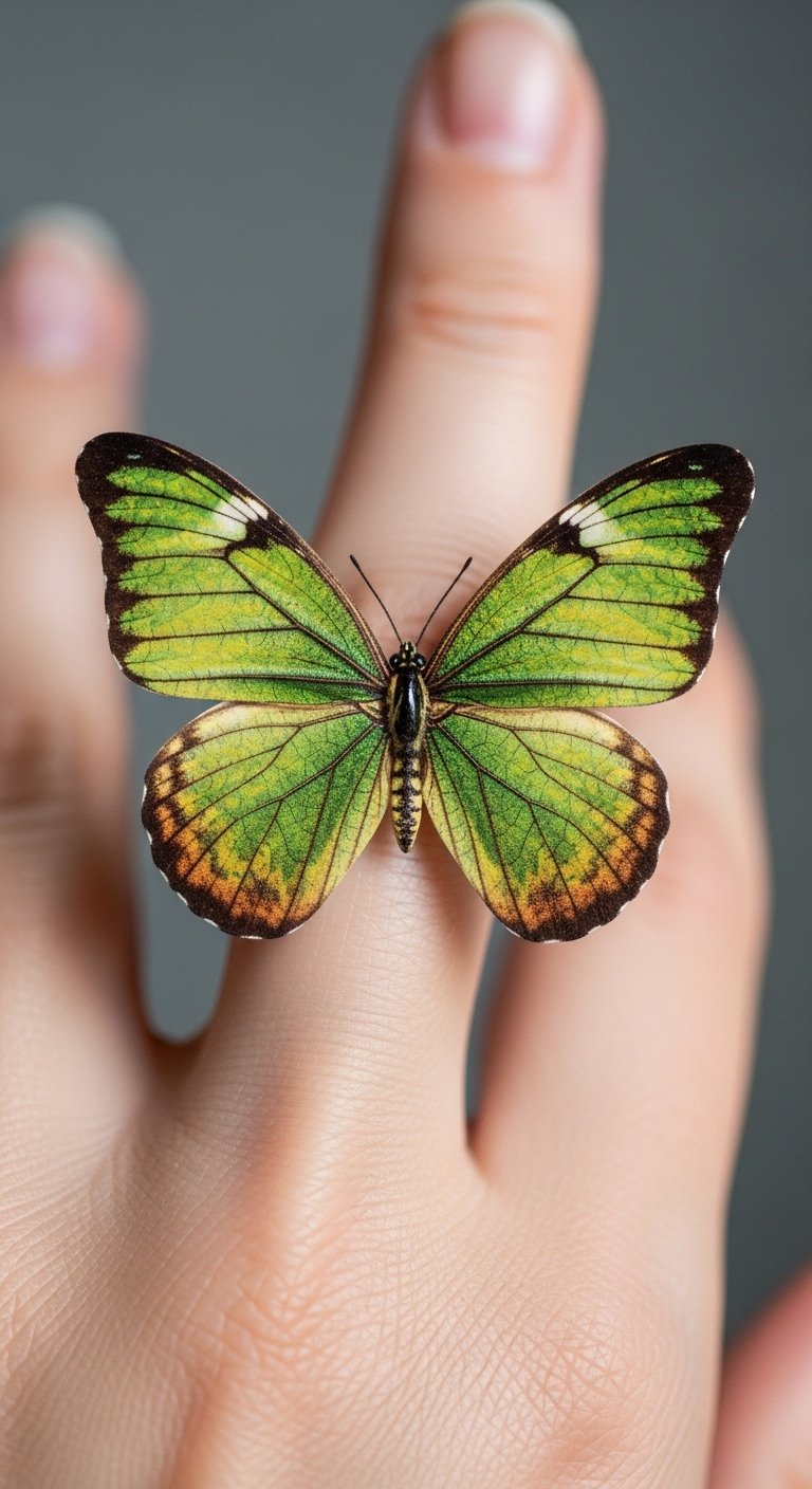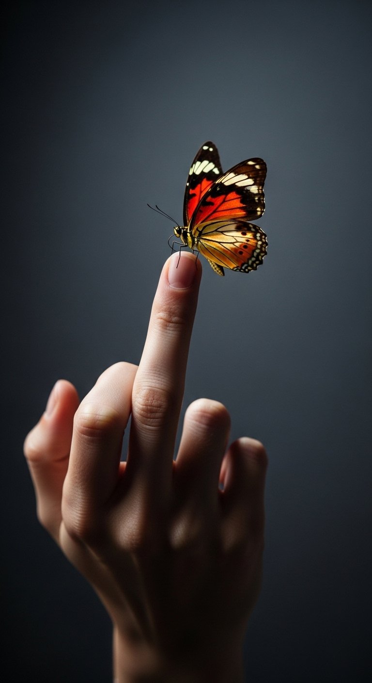 Rebirth-Themed Butterfly on the Pointer Finger