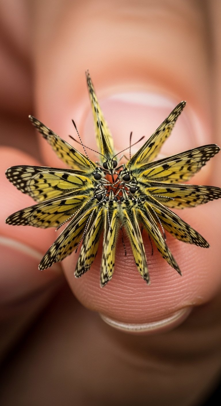 Minimalist Micro Butterfly Between Knuckles