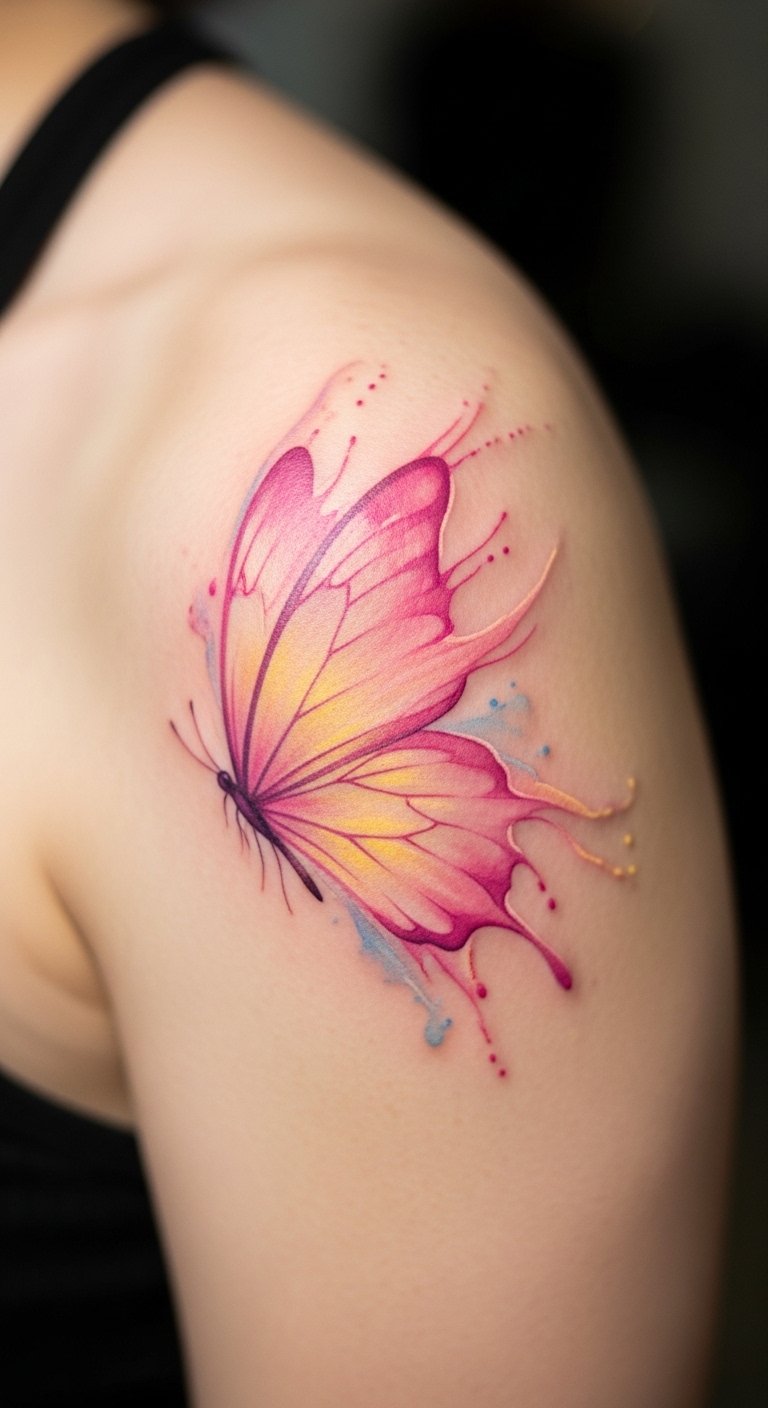 Butterfly tattoos for positive vibes uplift your shoulder. Add happy elements. Sketch positively. Use bright ideas. Place with intent. This inspires. Share the joy.