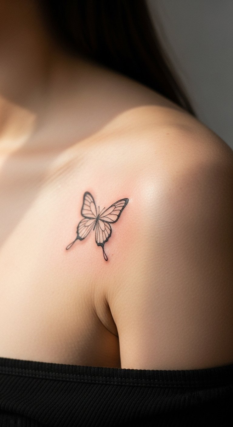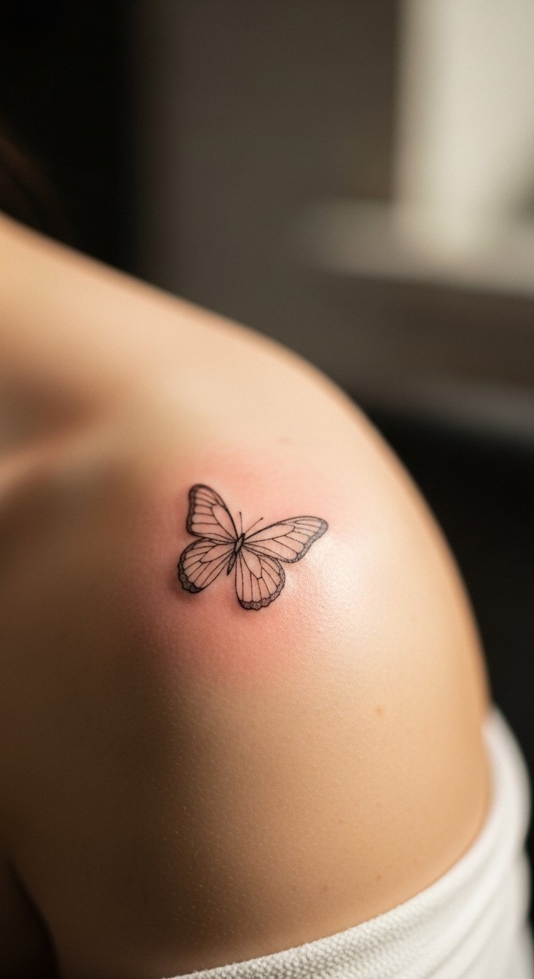 Age-appropriate small butterfly tattoos fit discreetly on your shoulder. Go tiny. Sketch lightly. Use minimal tools. Position carefully. This suits all. Try small tests.