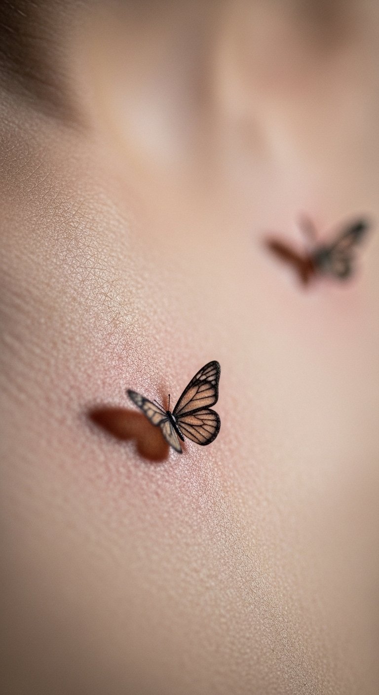 Tiny realistic butterflies pack detail into a small chest spot, making a big impact with little ink. Imagine lifelike wings no bigger than a coin. Sketch them at home with a sharp pencil for a free trial run. Opt for a nearby shop that offers quick sessions to save money. Position them in a cluster for a subtle story. Focus on one or two for a minimalist vibe. Use phone apps to design your layout before going in. Tiny details stay sharp with regular moisturizing. Quick tip: pick hypoallergenic products from the grocery store. This design works well under clothes but peeks out when you want. Start by drawing on your skin with washable markers to visualize it.