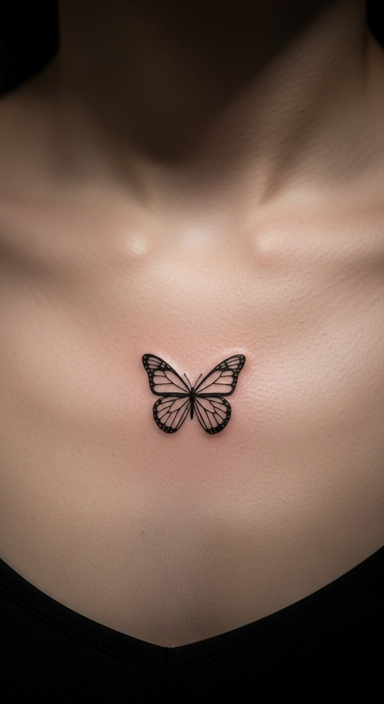 A small butterfly fits neatly on your chest for a discreet touch. Envision a tiny, perfect shape. Sketch small versions at home. Find quick, cheap tattoo spots. Place it in a corner. Keep it basic. Use erasers for adjustments. Compact design is practical. Tip: easy to hide. This one is versatile. Begin with tiny sketches.