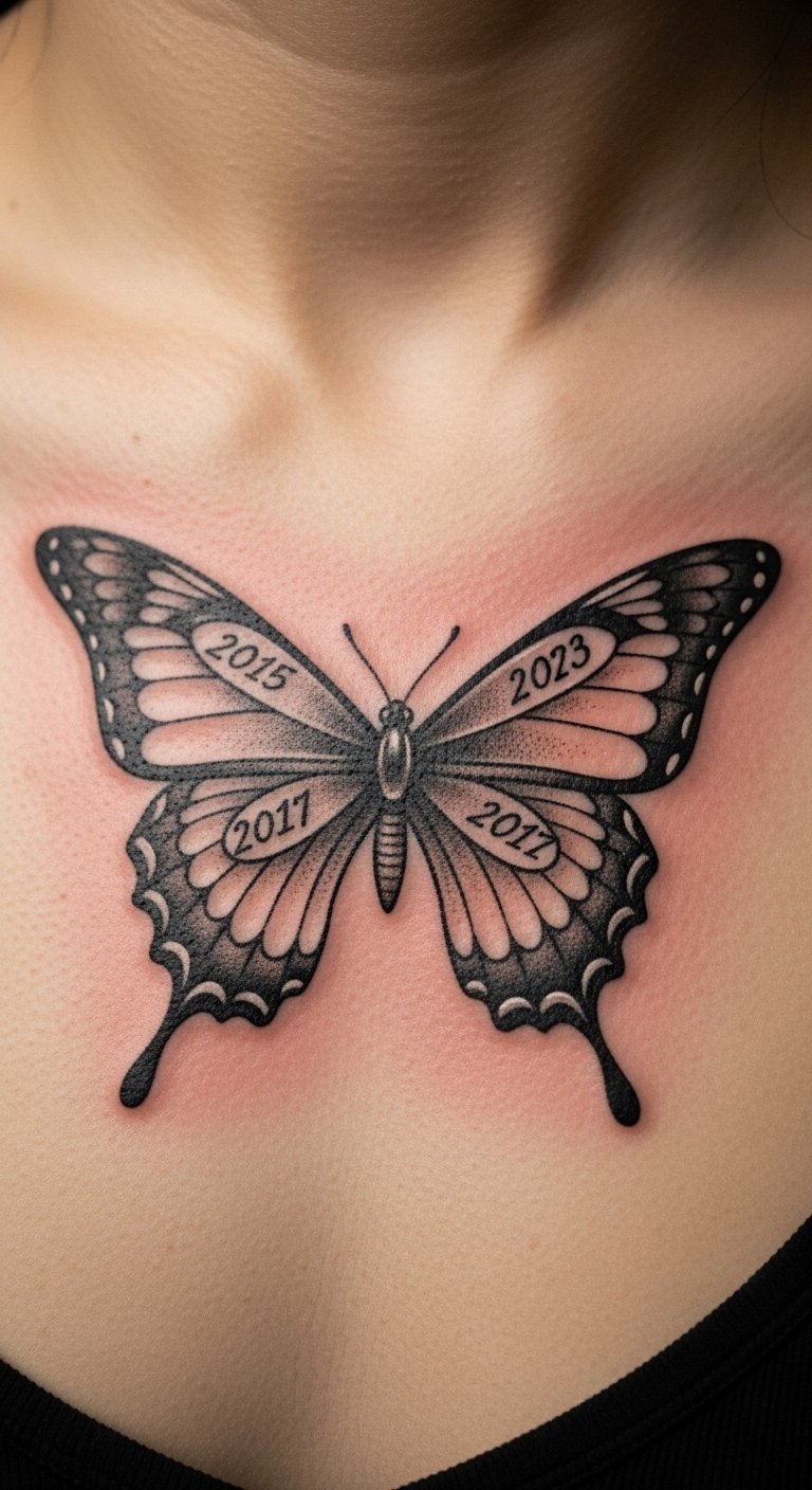 A personalized butterfly on your chest tells your unique story with custom details. Envision dates or symbols. Note ideas on paper personally. Find custom artists within budget. Tailor to your life. Add meaningful marks. Use journals for planning. Custom elements make it yours. Tip: share stories first. This design connects. Start by listing details.