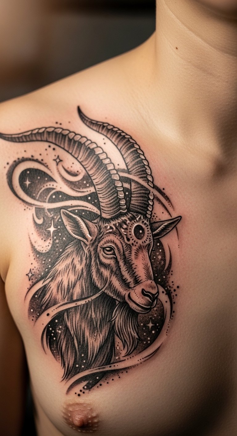 Chest Placement Capricorn Tattoo