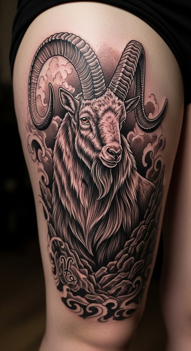 Thigh Large Canvas Capricorn Tattoo