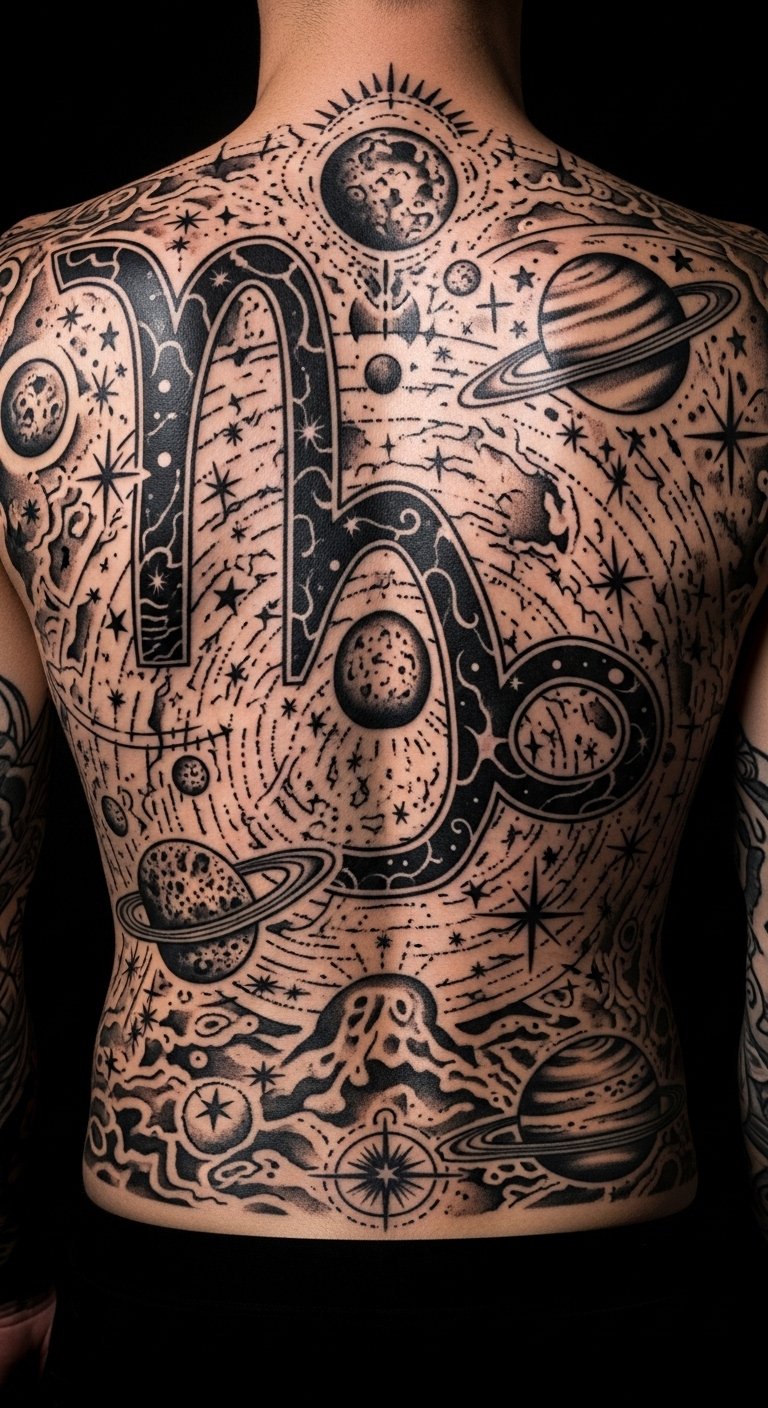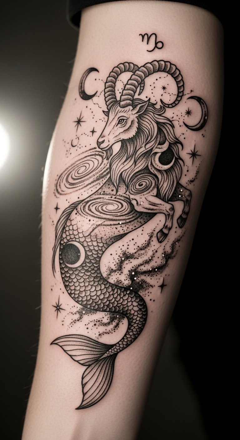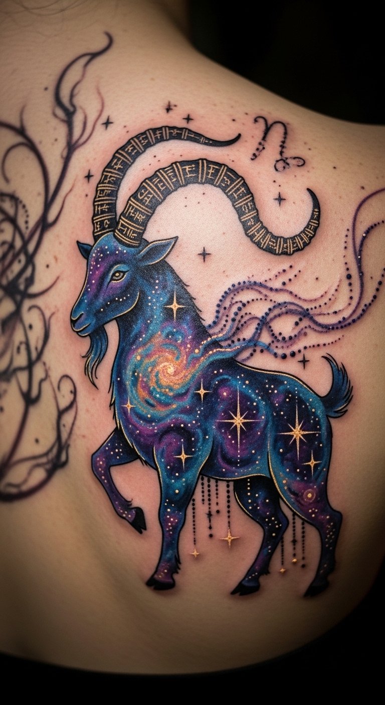 Blending Cosmic Elements Capricorn Tattoo