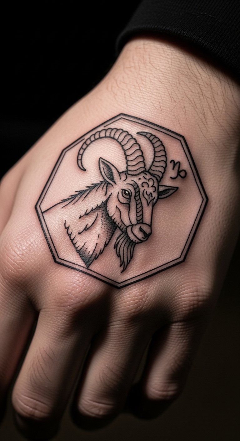 Octagon-Shaped Geometric Capricorn Tattoo
