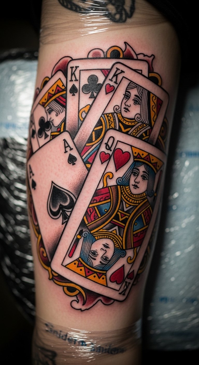 Go for a vibrant full deck sleeve if you want a big statement—pack it with suits and numbers. Plan it out by drawing sections on large paper. Seek artists with package rates around $300. Experiment with fabric markers on your arm for a test. Choose a few colors to save on ink costs. Design it to wrap around for balance. Include personal favorites like aces. Ideal for card enthusiasts. Break the process into sessions. It turns your arm into a masterpiece.