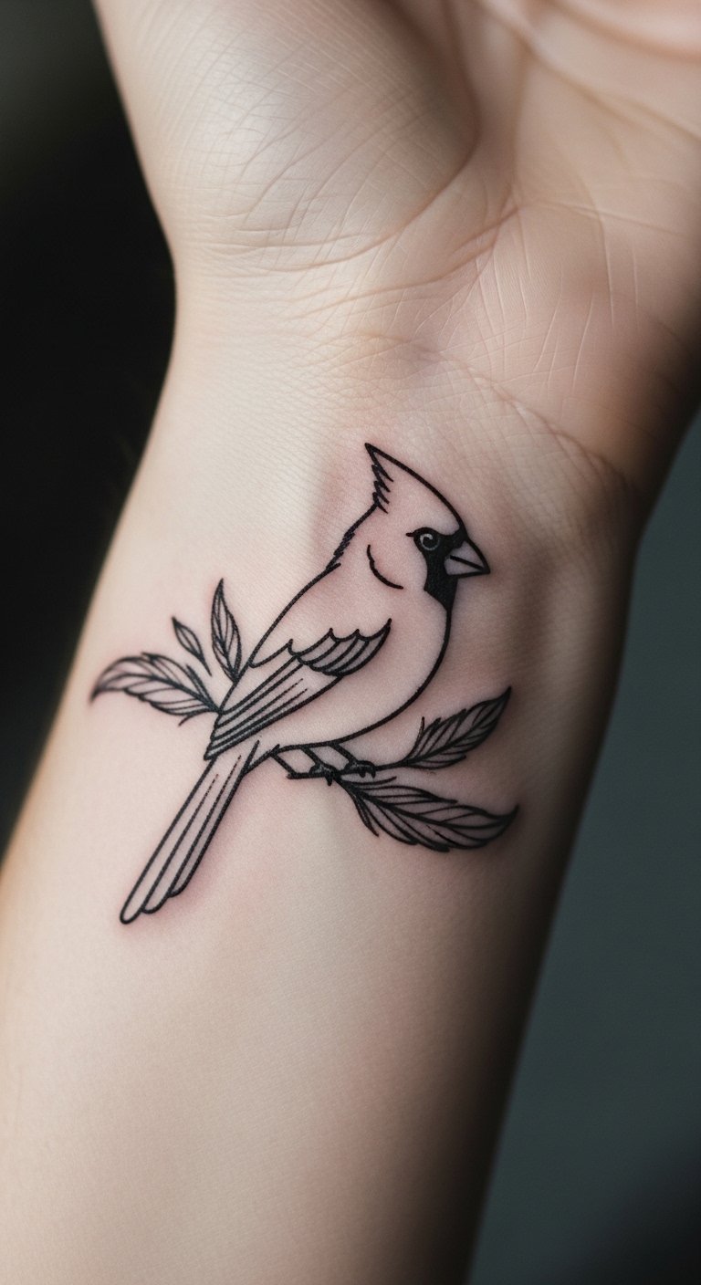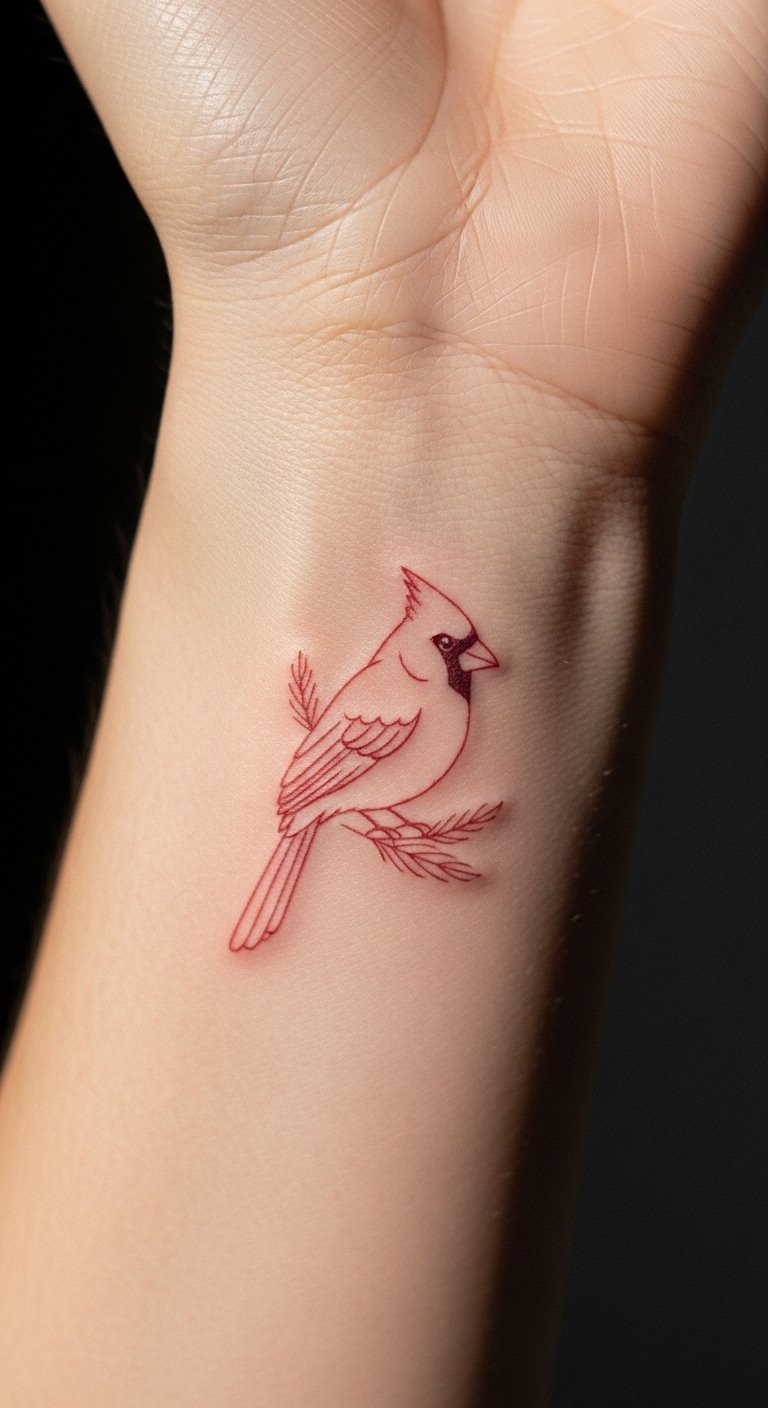 Small wrist cardinals fit busy lives. Trace a tiny bird on paper with a fine-tip pen. Keep lines clean for quick work. This spot hides under sleeves easily. Practice with free stencils from the web. A petite tattoo often runs under $50. Add a leaf for extra detail at no extra cost. It offers a subtle way to express yourself. Visit a nearby artist for fast, cheap options.