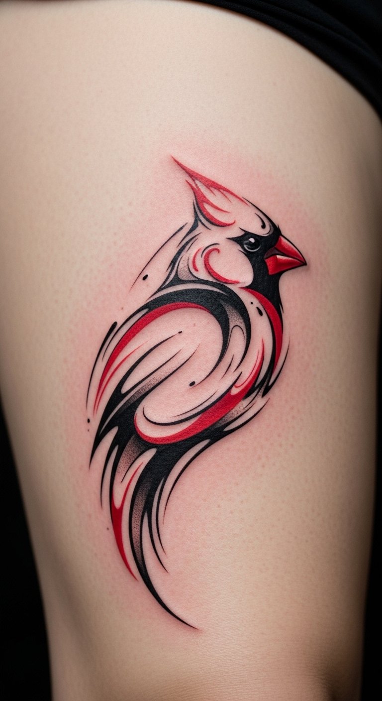 Abstract cardinals play with forms. Doodle freehand on paper to explore ideas. Use curves for a unique twist. Place it on your thigh for creativity. Apps offer abstract templates for free. This style keeps costs low with fewer lines. Experiment with patterns at home. It lets you express freely. Look for affordable abstract specialists nearby.