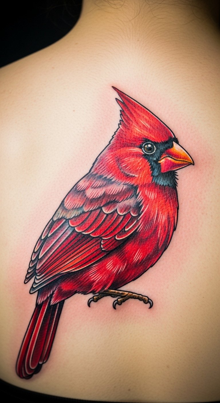 Colorful cardinals pop with hues. Mix paints at home to test colors. Start with red as the base. Put it on your back for impact. Free color wheels online help choices. A vibrant design adds joy affordably. Blend tones on paper first. It enhances your look with ease. Seek artists with color deals.