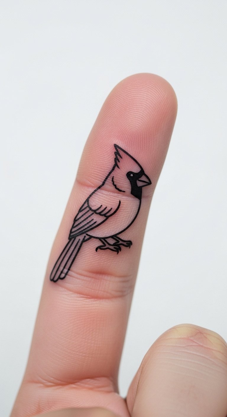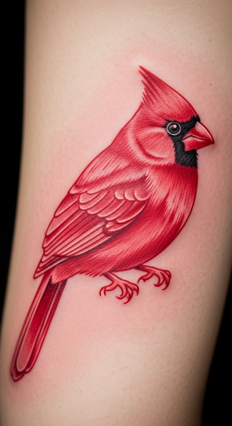 A line work cardinal keeps things straightforward. Start with a basic sketch on paper using a pen. Draw the bird’s shape in one color to keep costs low. This style works well for first-timers. Try a small design on your wrist for easy hiding. Use free online templates to trace at home. Pick a local artist who charges less for simple ink. Add a personal touch by tweaking the tail. This approach saves money and lets you test the look.
