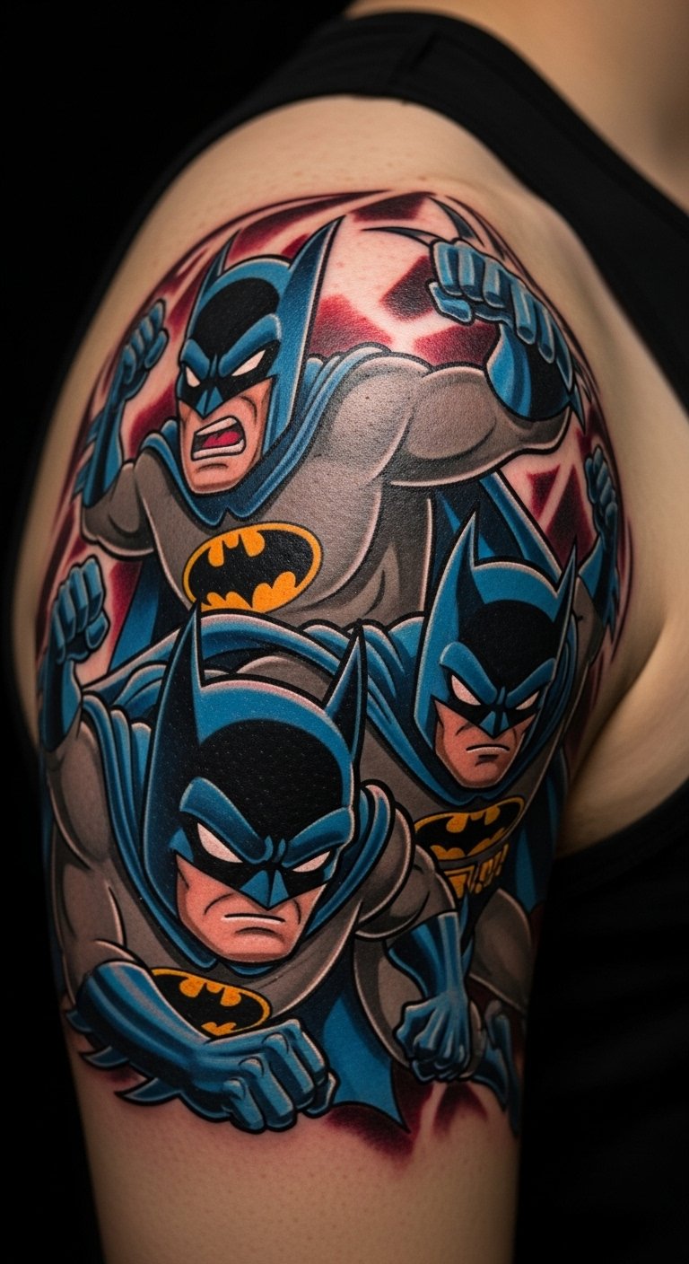 Picture a simple Batman outline that pops with strong lines. This design uses black ink for a dramatic effect. Start with a sketch on paper to plan your tattoo. Choose a local artist who specializes in bold styles. For a budget option, try temporary tattoos from online stores for under $10. Get friends to vote on your design via social media. Wear it on your arm for easy viewing. Add personal twists, like stars around the bat symbol. This tattoo works for daily wear. Keep it fresh with sunscreen. Practice drawing Batman at home with free apps. Share your ideas in online groups. End up with a tattoo that tells your story. Make it bold yet subtle. Test with henna first. Enjoy the process without stress.