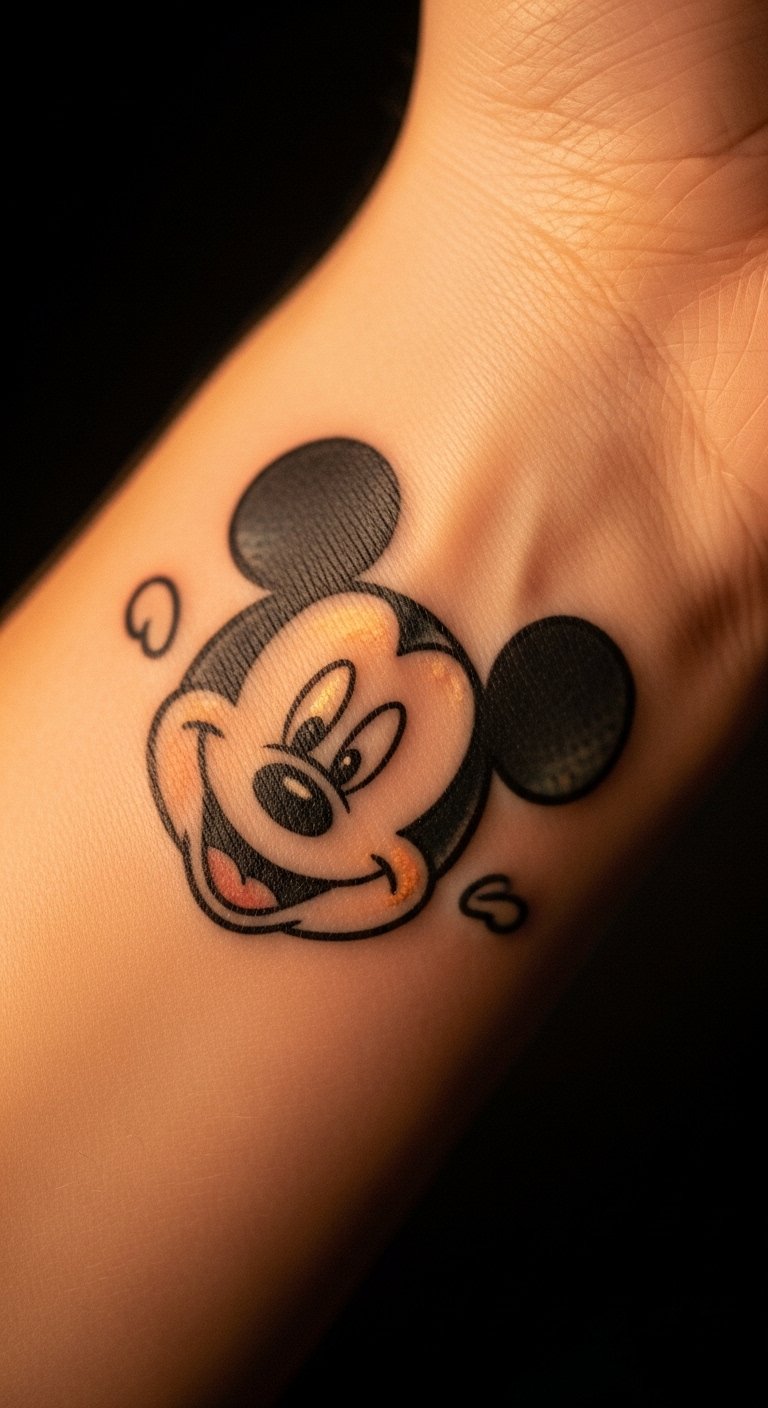 Imagine Mickey Mouse dancing on your wrist. This design adds joy with curved lines. Plan it out with a quick doodle. Look for budget artists in your area. Grab temporary versions from dollar stores. Show it off to friends online. Put it on visible spots like ankles. Add hearts for a personal touch. Use lotion to maintain the look. Practice with free drawing tools. Talk to others who have similar tattoos. Make it a family affair. Choose spots that hide easily. Try fabric markers for DIY tests. Love the magic it brings.