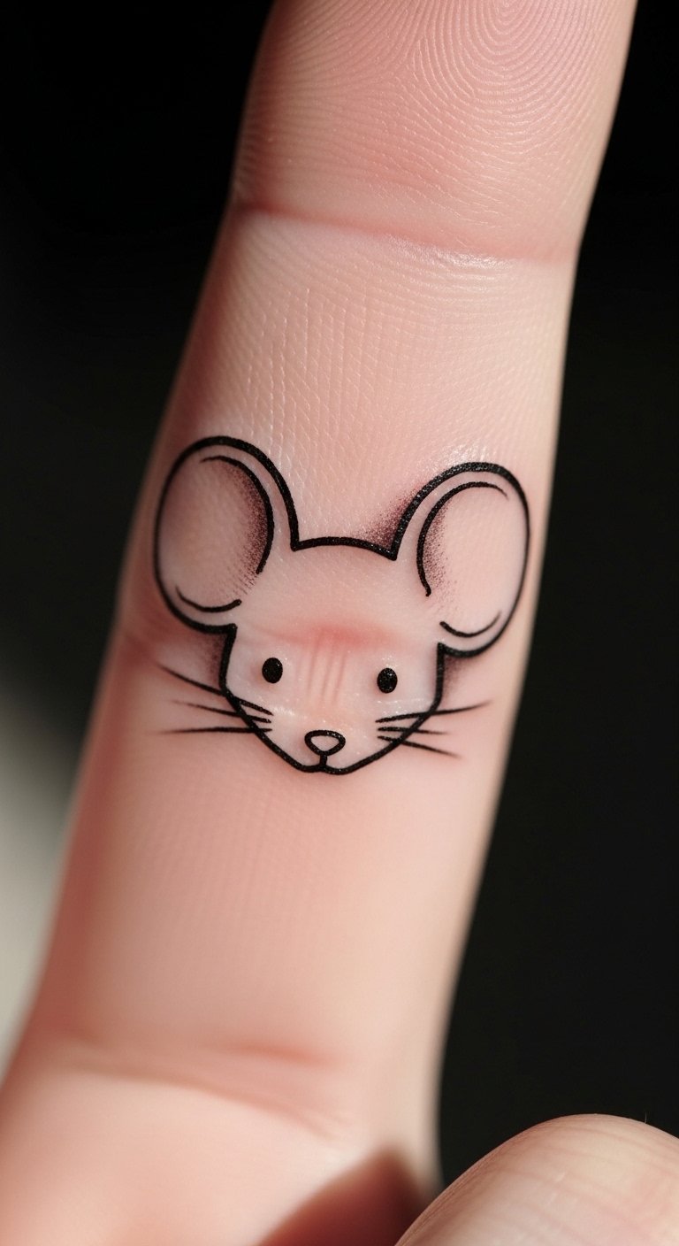 A simple Mickey shape on your finger stands out. This tattoo keeps things neat with one color. Jot down ideas on a notebook. Find deals on artist sites. Use stick-on versions for $1 each. Share sketches with your circle. Place it on hands for quick views. Add dots for simple details. Protect with daily cream. Practice on paper with pens. Join tattoo share groups. Keep it meaningful and easy. Go for tiny options to cut costs. Try with washable ink. Appreciate the clean look.