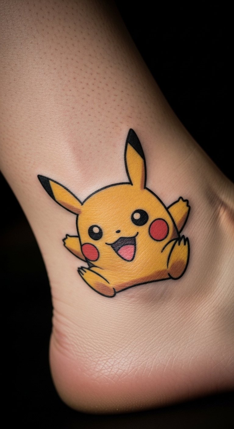 Pikachu on your ankle sparks joy. This tattoo features yellows and reds. Sketch on paper to start. Search for deals in town. Buy low-cost fakes. Share with your network. Place on feet for daily fun. Add balls for themes. Protect with socks. Practice on pads. Join Pokemon chats. Make it your buddy. Opt for simple forms. Test with stickers. Catch the excitement.