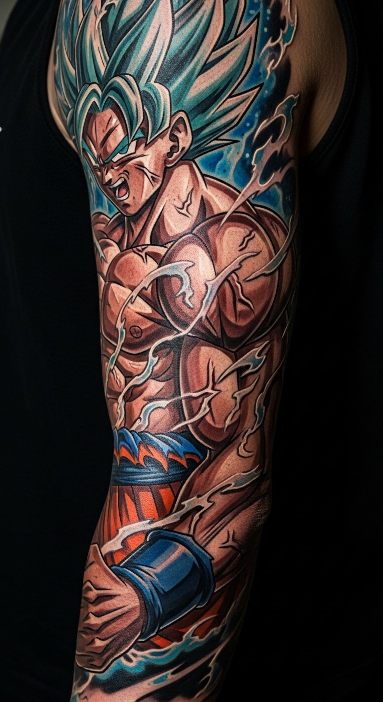Goku in action on your arm. This tattoo shows power with lines. Plan on a sheet. Find affordable pros. Use cheap imitations. Post for opinions. Wear on arms boldly. Add auras for punch. Shield from elements. Sketch with ease. Talk in communities. Fight with your design. Go moderate in size. Try with inks. Power up your look.