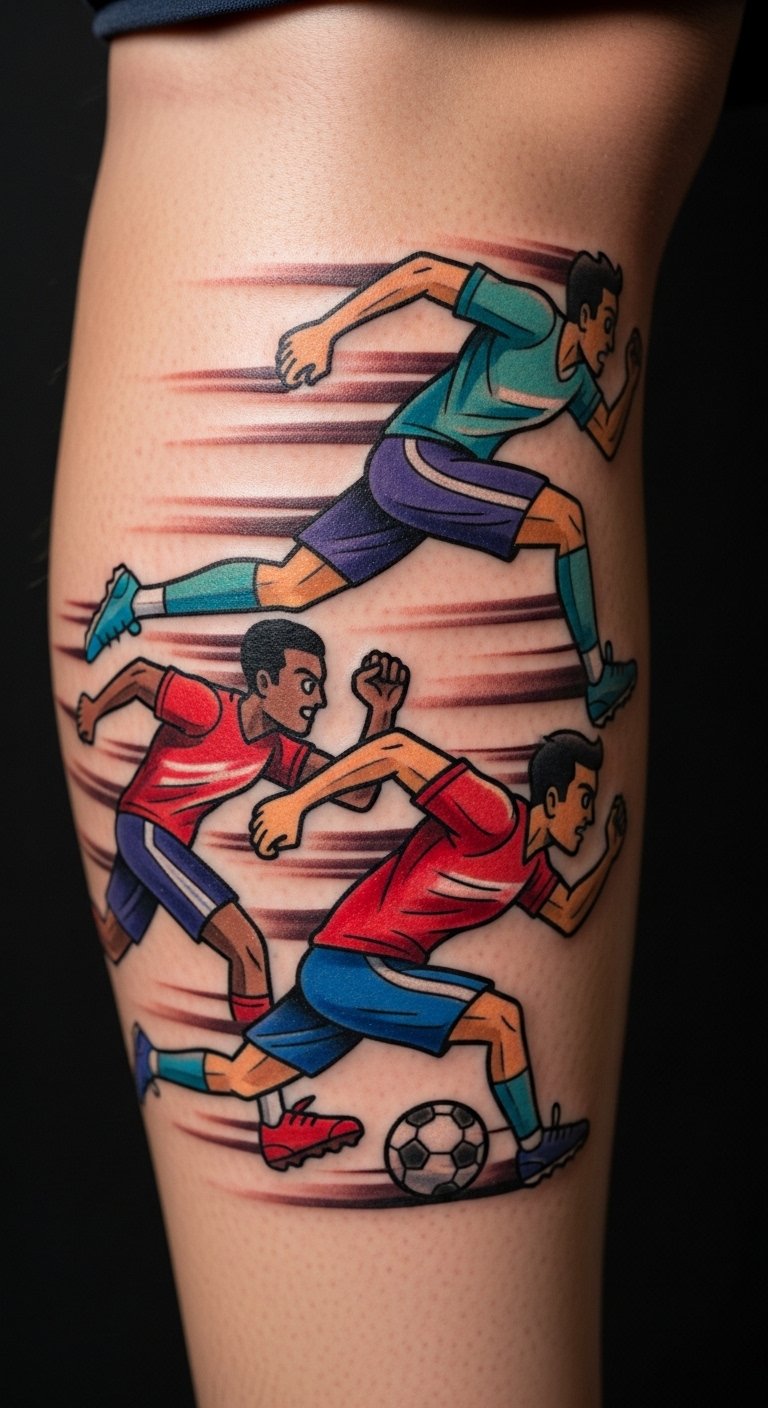 Runners in cartoons on your leg. This design shows energy. Jot sports. Search deals. Get active stickers. Post runs. Wear on legs. Add balls. Protect gear. Sketch sports. Engage athletes. Run with design. Stay budget. Test runs. Feel the rush.