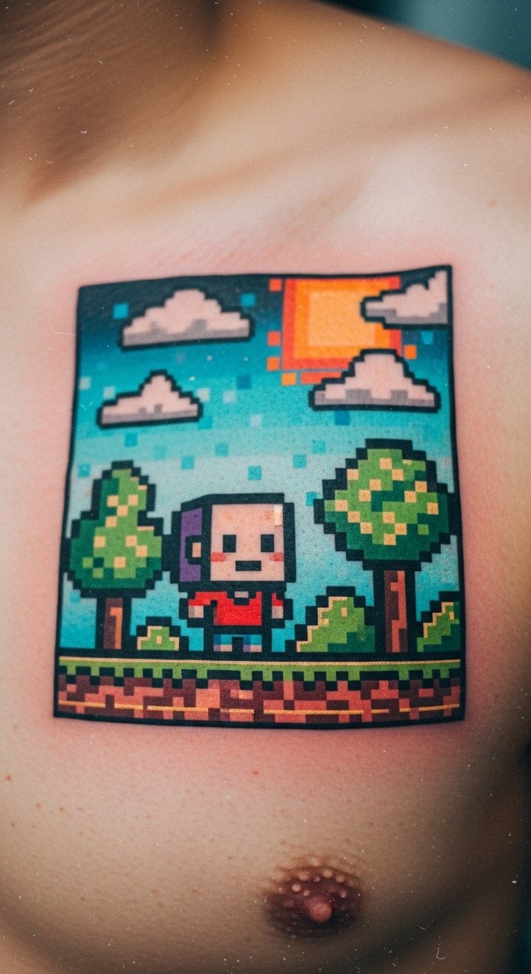 Pixel blocks on your chest. This design revives games. Note pixels. Find retro artists. Use pixel stickers. Post adventures. Wear on chest. Add levels. Guard pixels. Sketch blocks. Join game groups. Adventure on. Keep costs pixel. Test with games. Play forward.