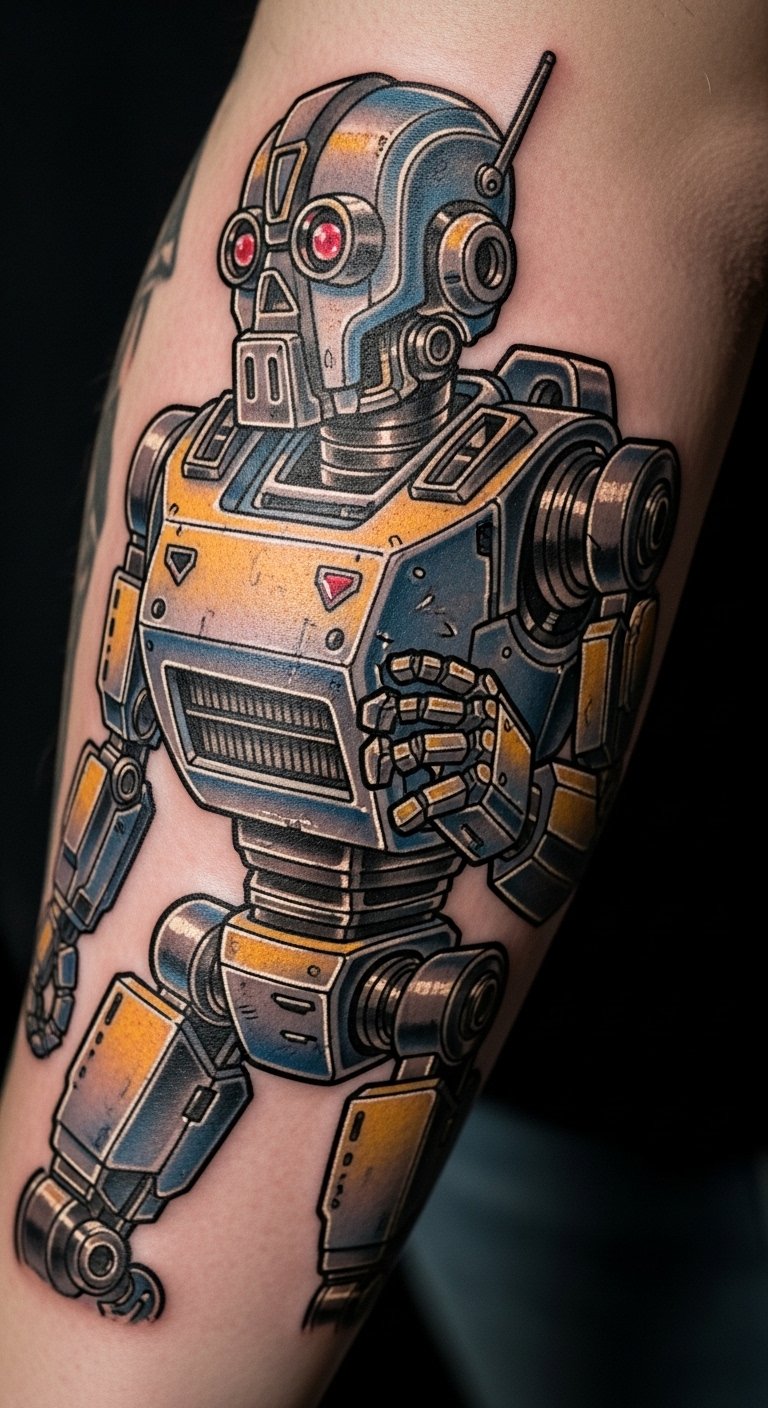 A robot mix on your arm. This tattoo fuses tech. Draw robots. Seek hybrid deals. Get robot stickers. Share bots. Put on arms. Add gears. Protect metal. Sketch machines. Talk tech. Robot your style. Be thrifty. Test with bots. Gear up.