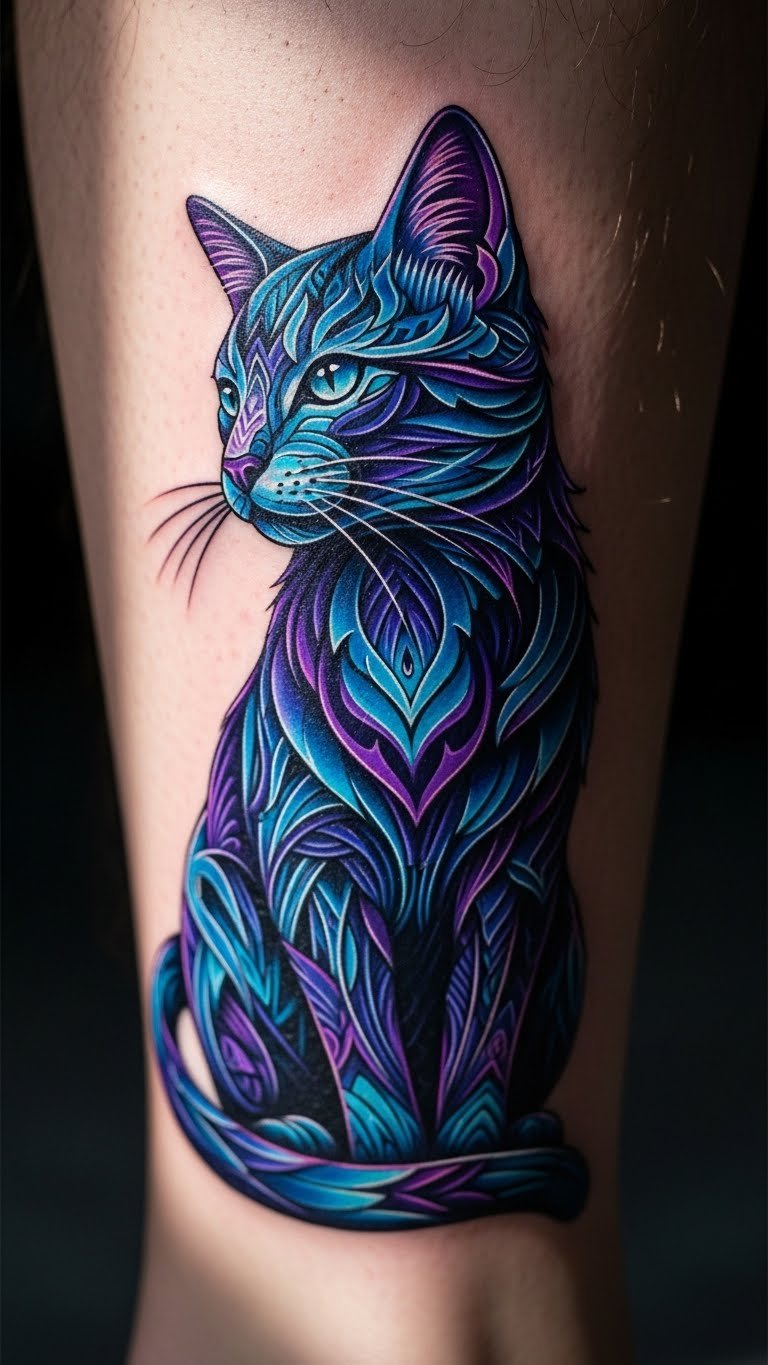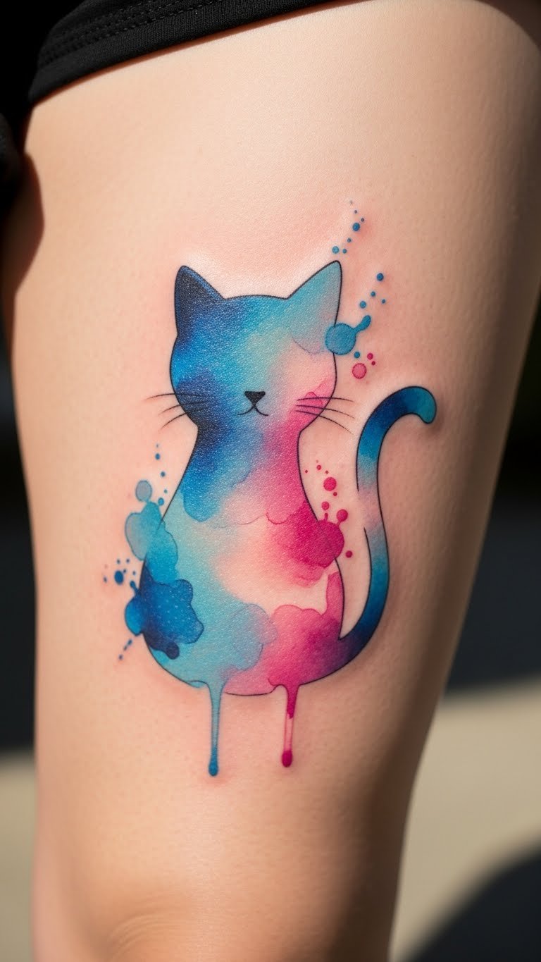 Go for a watercolor cat design if you want an artistic twist. It looks like a painted cat with soft, blended colors that flow. Sketch ideas on paper using colored pencils to plan ahead. Find affordable templates online or draw your own with basic art supplies. Place it on your back for a hidden gem that won’t affect your clothes. Sessions might cost $80 or less for smaller pieces, so look for local deals. Break it into steps: choose colors that match your favorite cat toy. Test with washable markers on your skin first. This style adds fun without much fuss, and simple creams keep it vibrant. It’s an easy way to express creativity on a budget.