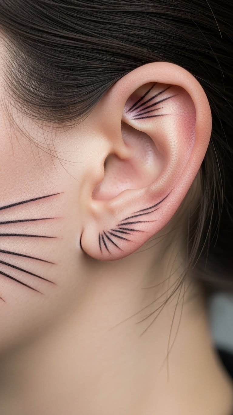 Fine-line cat whiskers make for a subtle, delicate tattoo. Imagine thin lines that mimic a cat’s face features. Sketch with a fine pen to practice at home. Place it behind your ear for a secret spot. Costs can be as low as $60, especially for quick sessions. Use free software to create your pattern. Add a tiny nose for personalization. Test with henna kits from the store for under $10. This method keeps things light and easy, with basic bandages for healing. It’s perfect for a low-key expression.