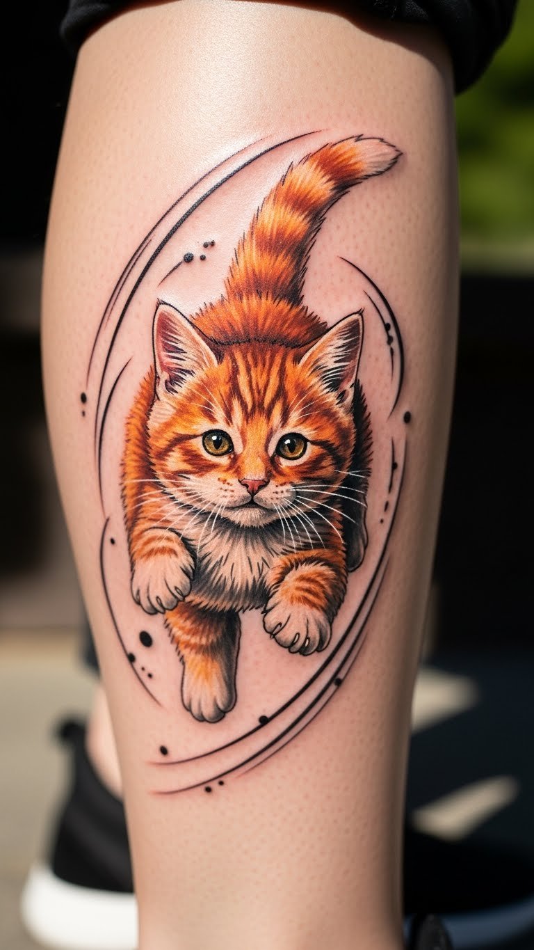 A playful kitten pose tattoo captures fun and energy. Show a kitten jumping or playing in simple lines. Draw inspiration from pet photos and outline it yourself. Put it on your calf for when you want to flaunt it. Expect around $90, but look for flash sales. Create a mock-up with colored paper cutouts. Include a ball of yarn for added charm. Use affordable temporary transfers to experiment. Simple routines like sunscreen help it stay bright. This idea brings joy without complexity.