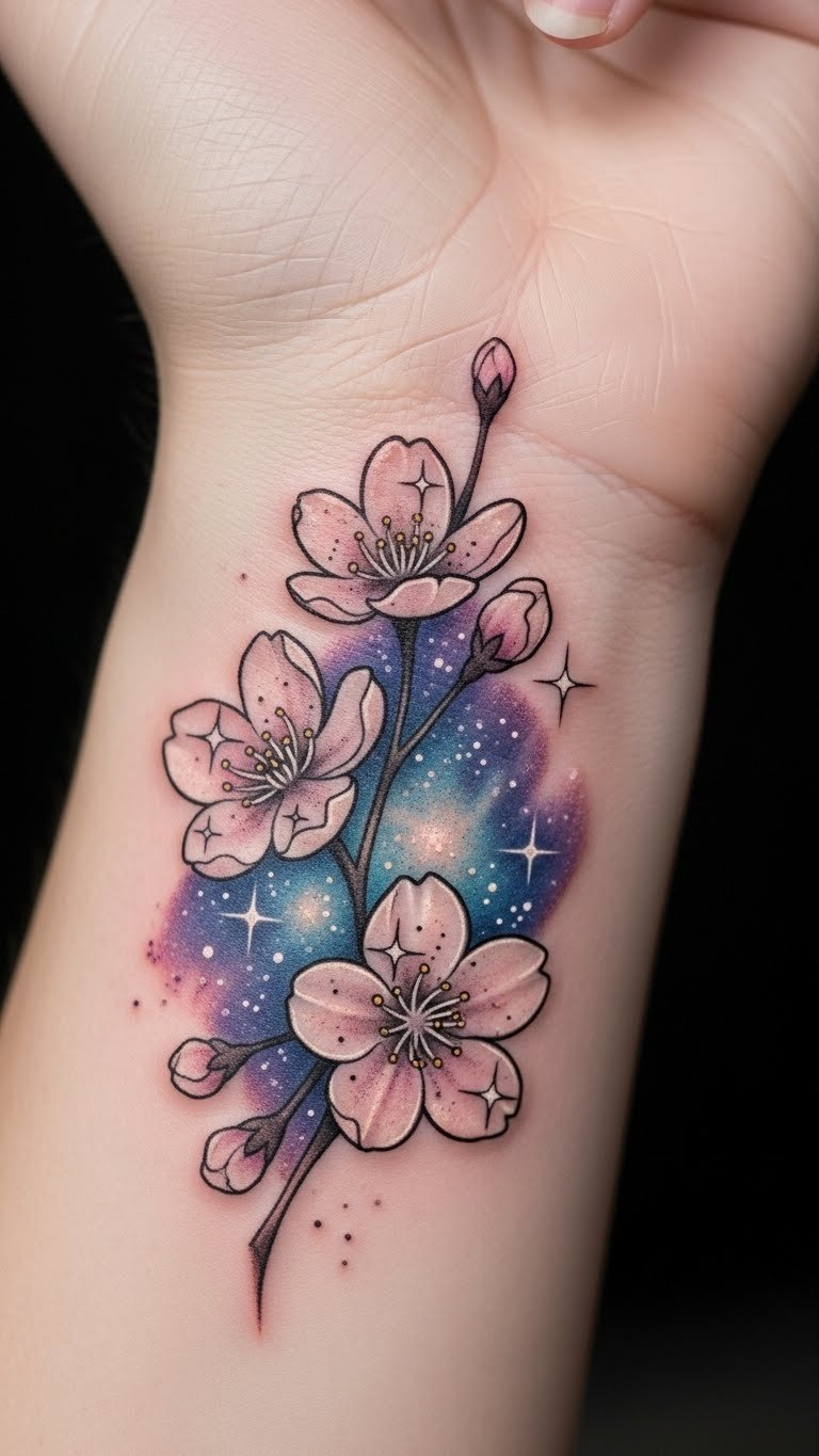 Celestial Cherry Blossom Tattoo