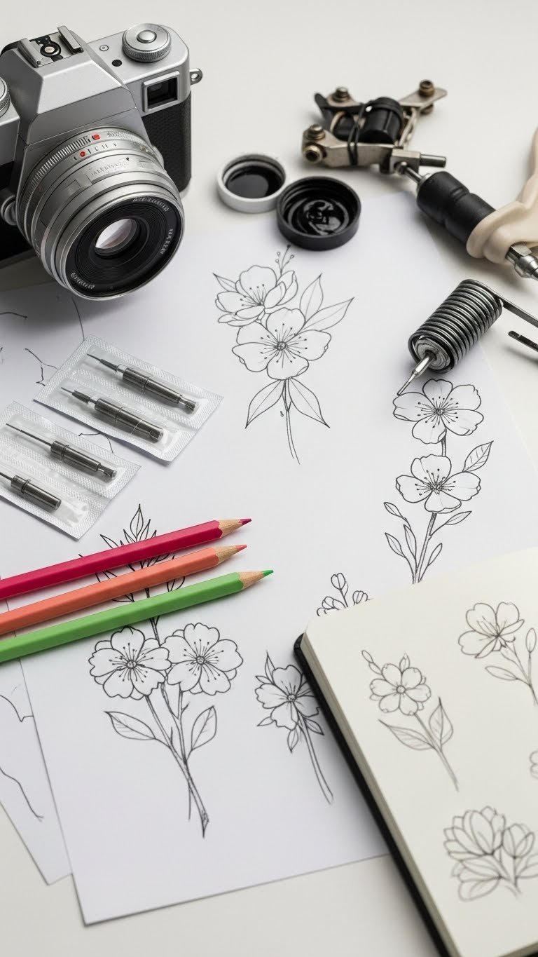 DIY tattoo sketching ideas start with paper. Draw blooms quickly. Use pens at hand. Real tip: Try different layouts. It’s free fun. Focus on basics.