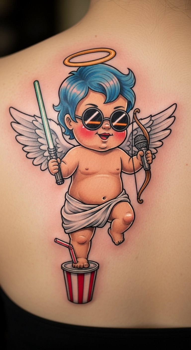 Pop culture cherub tattoos nod to trends. Try it on your back. It adds fun layers. Reference favorites. Use online images. Sketch inspirations. Add nods. Bold the references. Keep it light. Test ideas. This connects personally.