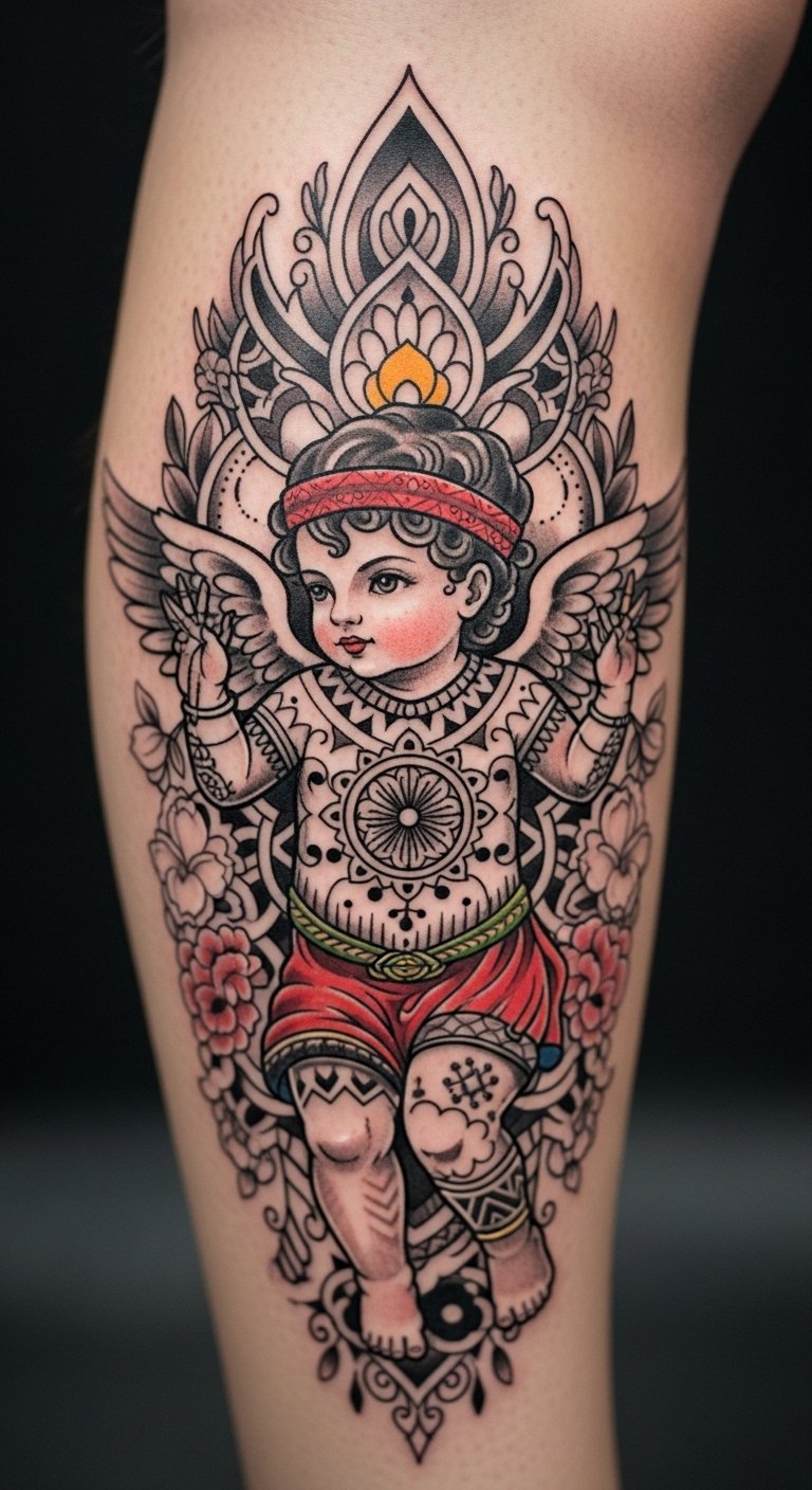 Cultural cherub tattoos celebrate roots. Put it on your leg. It honors heritage. Research traditions. Draw variations. Include symbols. Bold the culture. Find shared ideas. Adapt simply. This enriches stories.