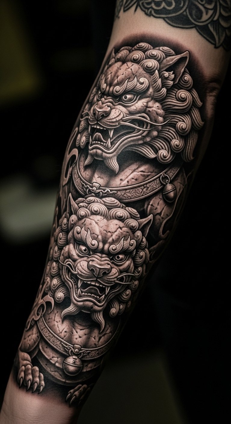 Fu dog protectors offer safety. Place them on your forearm for visibility. They look strong and mythical. Start with dog outlines from books. Copy them on paper. Add details with pencils. This makes it budget-friendly. Look for artist discounts nearby. Prices might be $60. Keep the dogs symmetric and fierce. Focus on the faces. Your protector can mean security. Try a DIY with clay figures. Use home materials. Practice sculpting. Ask for advice online. A fu dog adds defense.