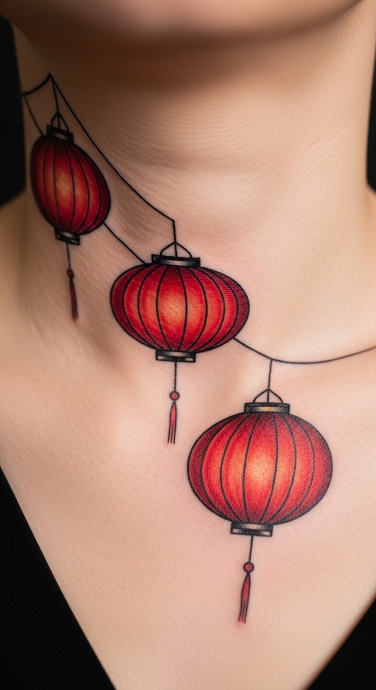 Red lanterns bring good luck. Symbolize it on your neck for a pop. It’s festive and bright. Use lantern shapes from crafts. Draw them on paper. Add strings with pens. This tests affordably. Look for tattoo promotions. Some are under $40. Keep the lanterns simple and glowing. Focus on the curves. Your symbol can mean joy. Try a DIY with paper crafts. Use old paper. Practice folding. Get feedback. A red lantern lights up your ink.