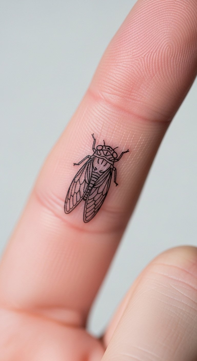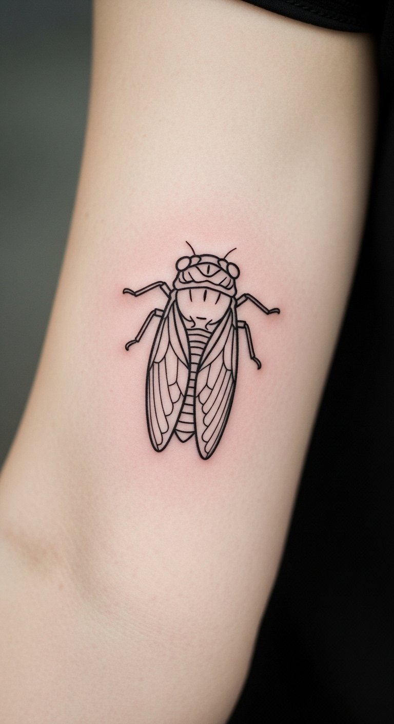 Think simple lines that say a lot. A minimalist cicada outline focuses on the core form. It represents rebirth without overwhelming details.