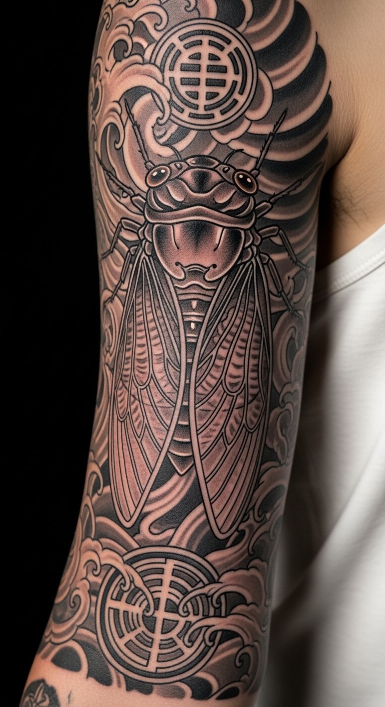 Subheading 26: Cross-Cultural Cicada Fusion Tattoo