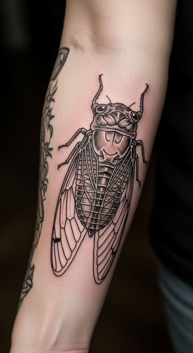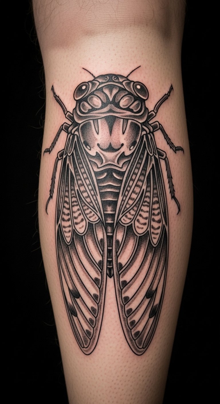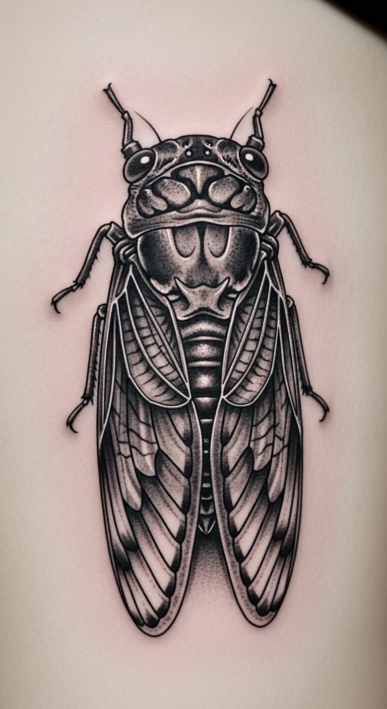 Stick to shades. Black and grey cicada tattoos look timeless. They highlight resilience.