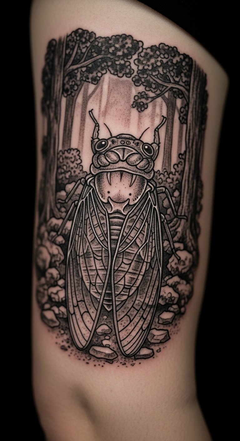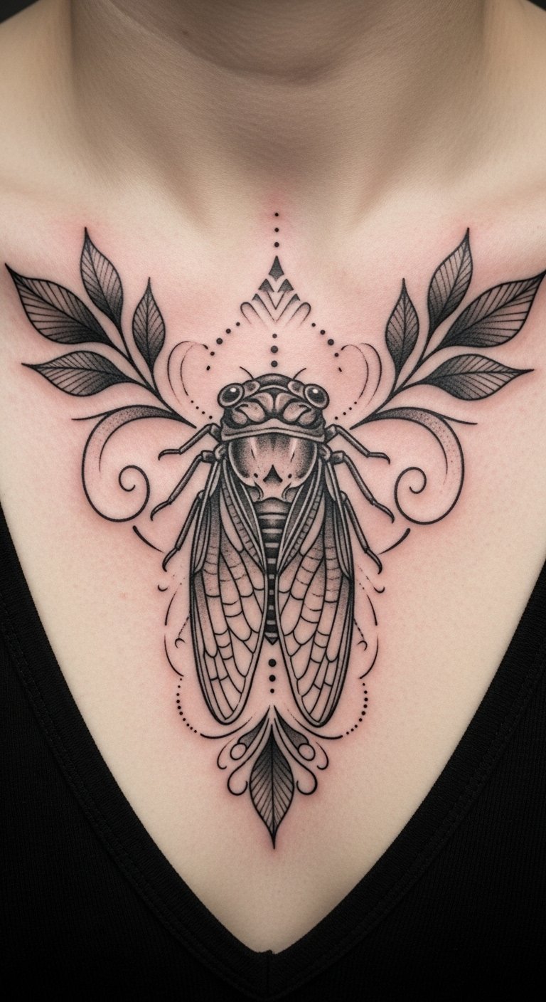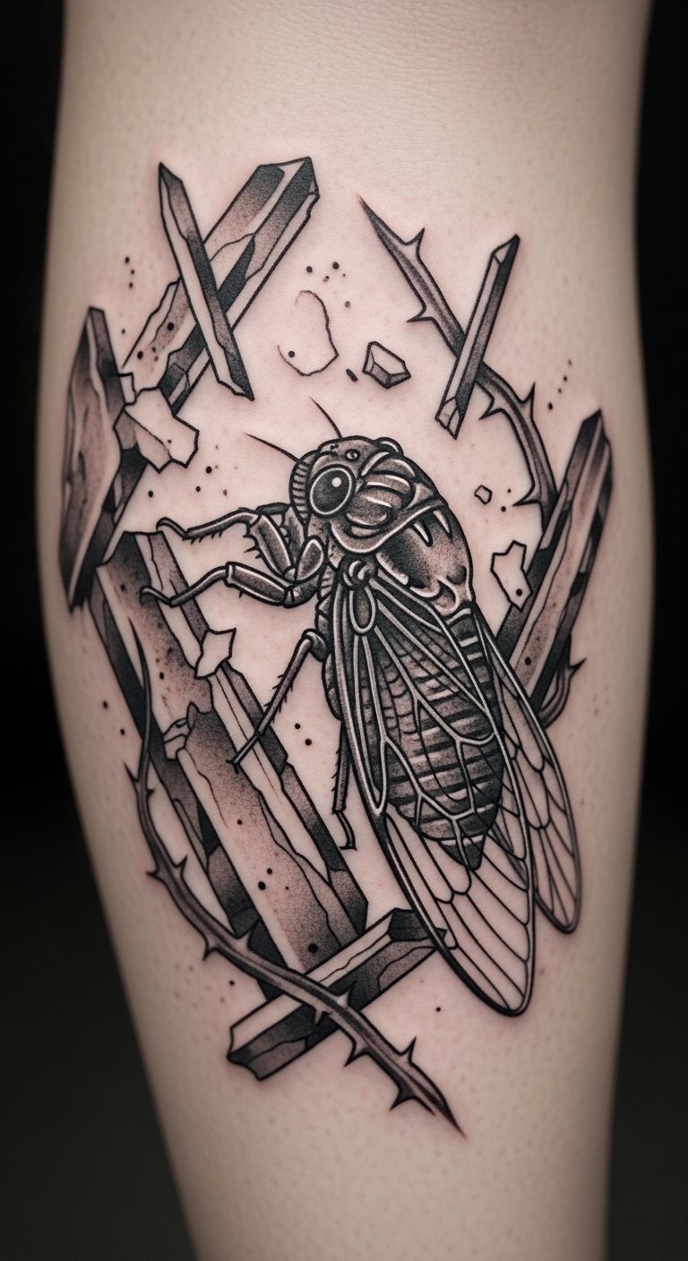 Stick to shades. Black and grey cicada tattoos look timeless. They highlight resilience.