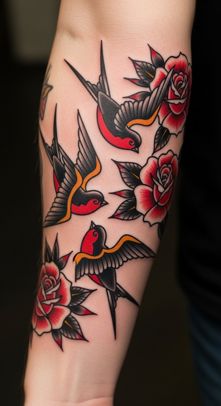 American traditional tattoos use strong lines and basic colors for icons like anchors or daggers. They stand out for their lasting appeal. Draw rough versions at home with markers to see what fits. Find budget artists through community events where prices drop for flash designs. Aim for pieces under $200 by choosing smaller spots. Mix in elements from your life, such as adding a family initial to a classic rose. Try stick-on versions first to check placement. These tattoos work well on visible areas for daily wear. Keep it straightforward to save time and money on touch-ups.