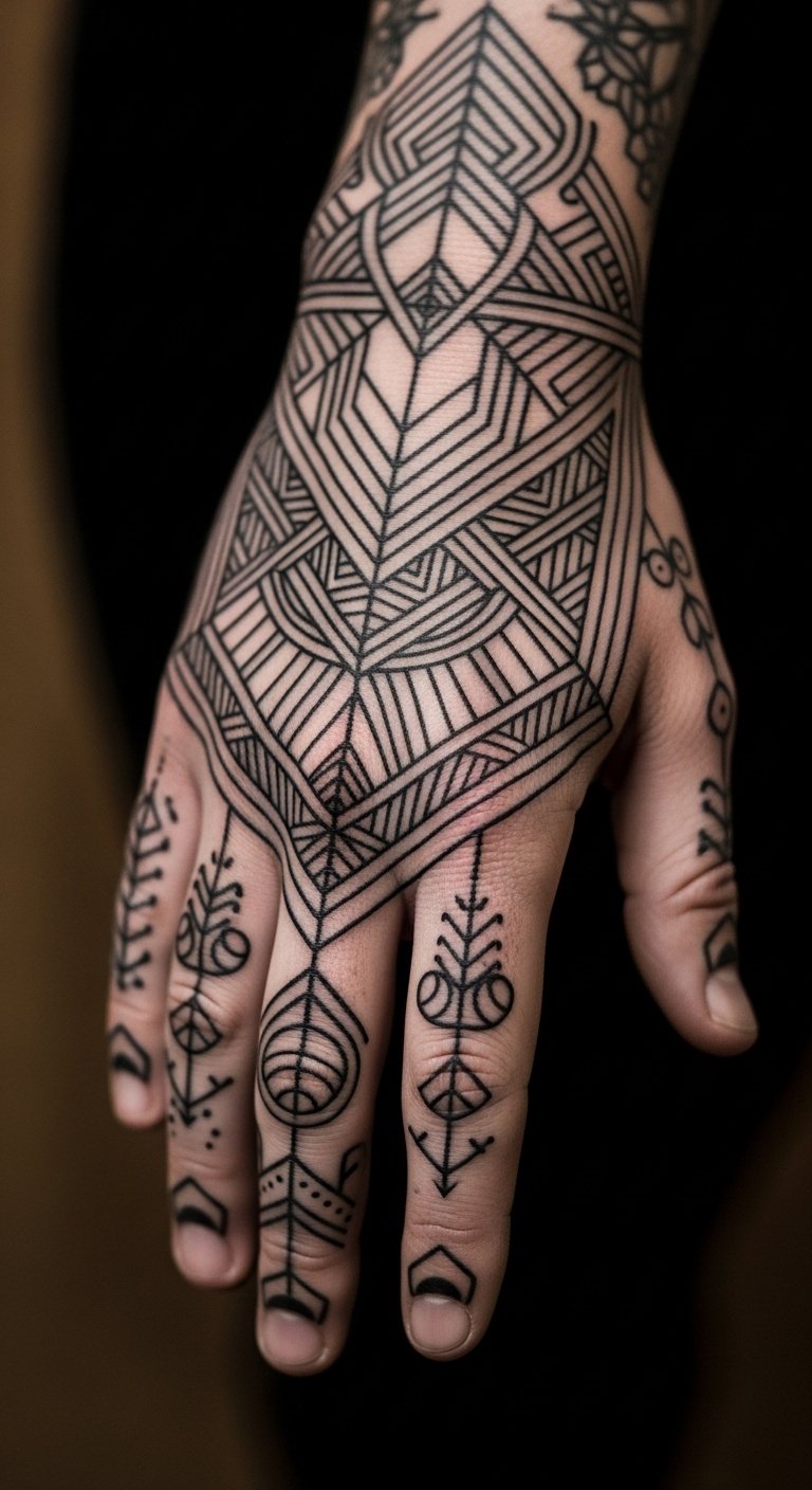 Geometric blackwork art uses shapes and lines for a modern edge. Perfect for clean looks. Create grids on paper with a pencil. Find deals on social media for affordable artists. Stick to basic shapes to lower costs. Personalize by adding stars or dots. Experiment with string art at home. This style suits wrists or arms for visibility. Start with one piece to test.