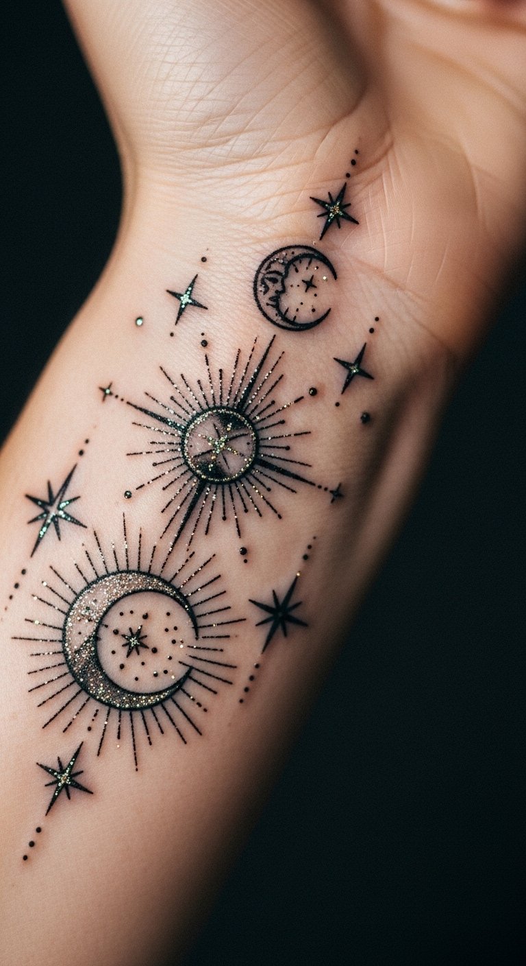 Women’s elegant tattoos highlight grace with motifs like stars. Empowering and chic. Draw soft shapes at home. Seek women-owned studios for fair prices. Opt for delicate pieces. Add heartfelt elements. Practice with soft pastels. These fit feminine areas.