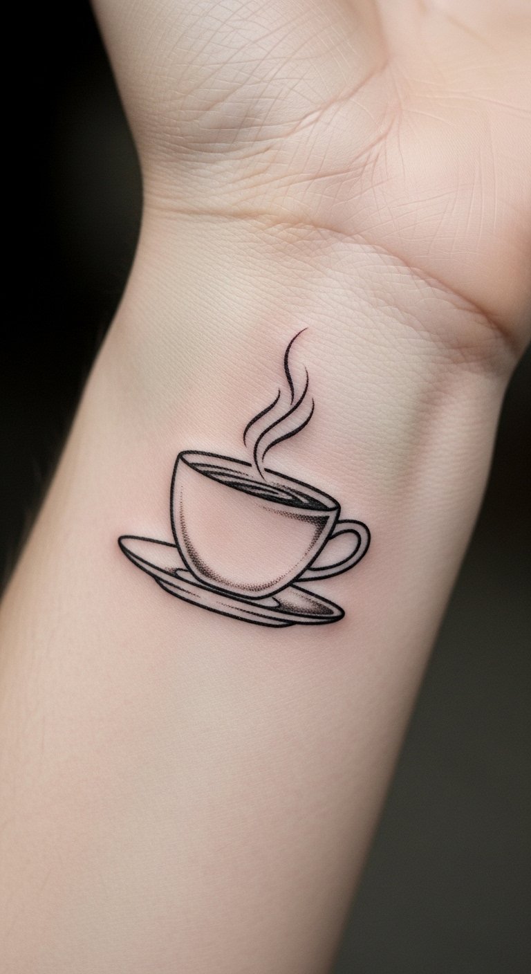 A simple coffee cup outline works well for first-timers. Think of a basic shape that fits on your wrist or ankle. Draw it freehand on paper first. Use a fine-tip marker for practice. This helps you see the size before ink. Head to a local shop for the real deal. Many places offer deals under $50 for small pieces. For a DIY try, grab temporary tattoo kits from online stores. They cost less than $10 and wash off easy. Add your twist, like a small heart next to the cup. Keep skin clean after. Moisturize daily to help it heal. This design stays hidden at work but means something to you. Go for black ink to keep it cheap and classic.