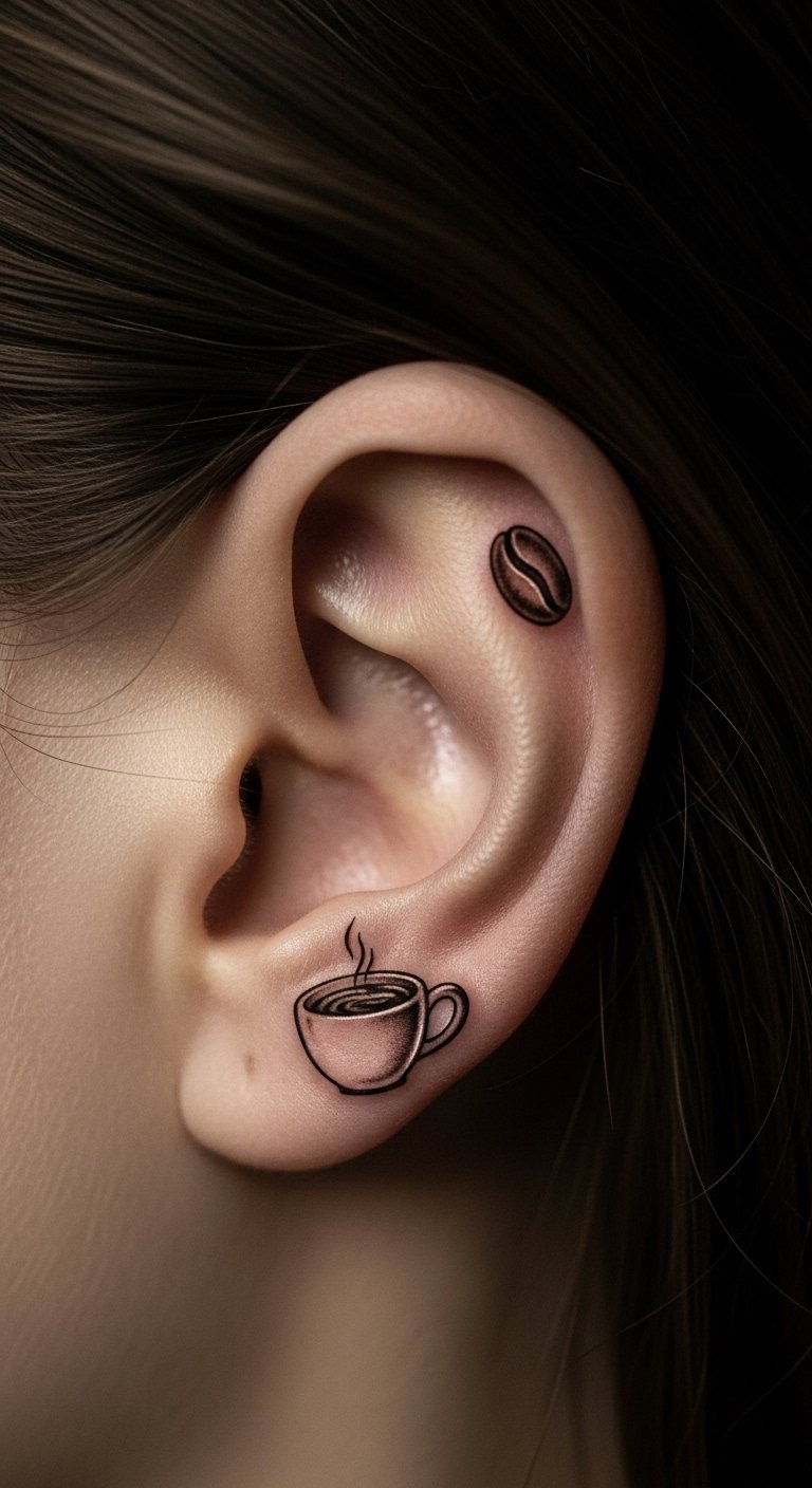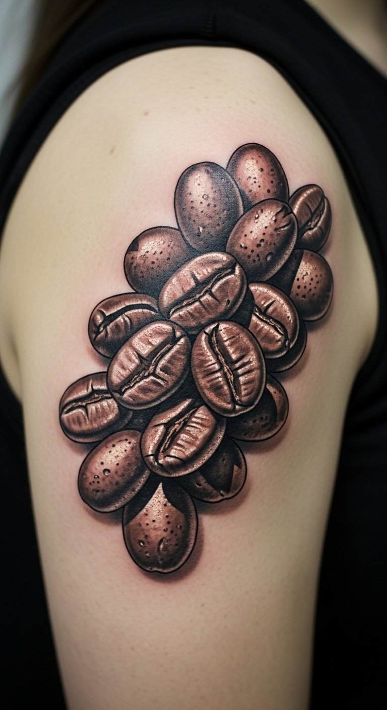 Coffee bean clusters make for a neat group design. Think of several beans bunched together. Start with pencil sketches at your desk. Group them in a circle or line. Check local artists for quick sessions. Many charge by the hour, so keep it small under $80. For DIY, cut shapes from paper and trace on skin. Get temporary options from dollar stores. They let you play around first. Add a leaf for extra flair. Place it on your shoulder for cover when needed. This idea suits coffee fans who want something quick.