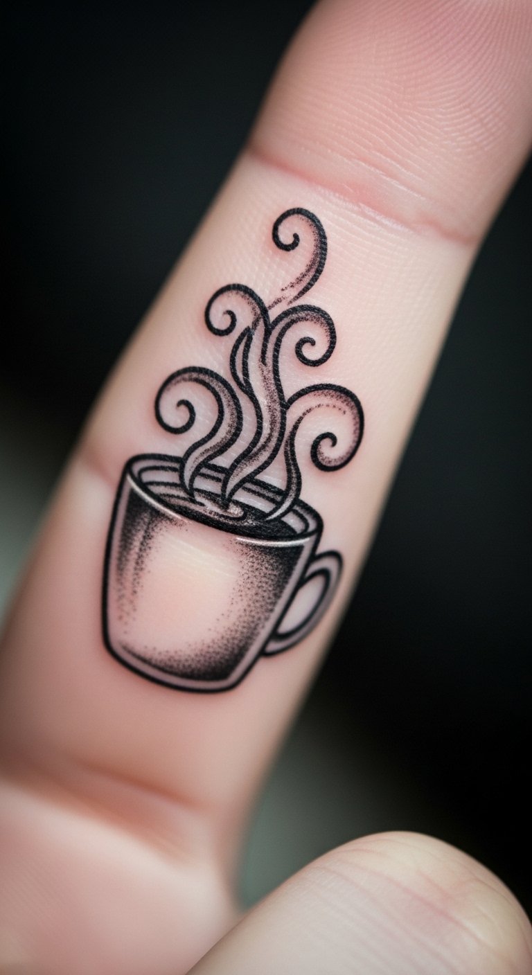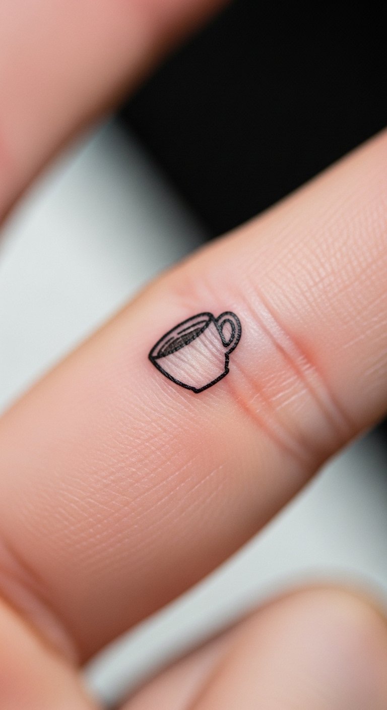 Tiny finger tattoos keep it subtle. A small cup fits perfect. Sketch tiny ideas. Use your finger as a guide. Look for finger specials. They cost under $40. Draw with fine liners at home. Buy mini stickers. Test and decide.