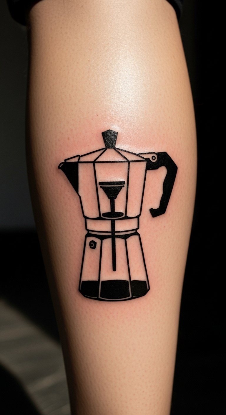 Moka pot silhouettes nod to coffee roots. See the pot’s simple form. Trace it from a picture. Add your flair. Find budget artists for icons like this. Expect $60 or less. At home, cut stencils from cardstock. Use them for fake tattoos. Test on your calf. This design tells a story.