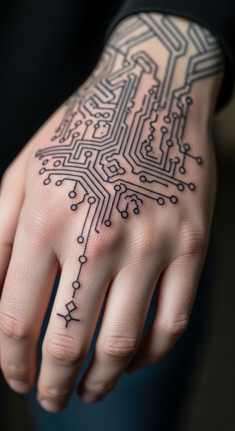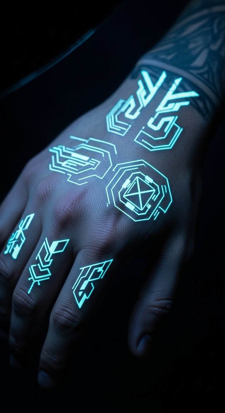 Cybersigilism tattoos feature futuristic abstract designs. Picture digital symbols on your hand that feel modern. They add a tech-inspired edge to your look. Draw sigils with a phone app for free practice. Find deals on platforms like social media for sessions under $90. Use sticker paper to create mock designs at home. Put them on your wrist for a bold statement. Phone apps keep it user-friendly. This method lets you explore trends without breaking the bank.