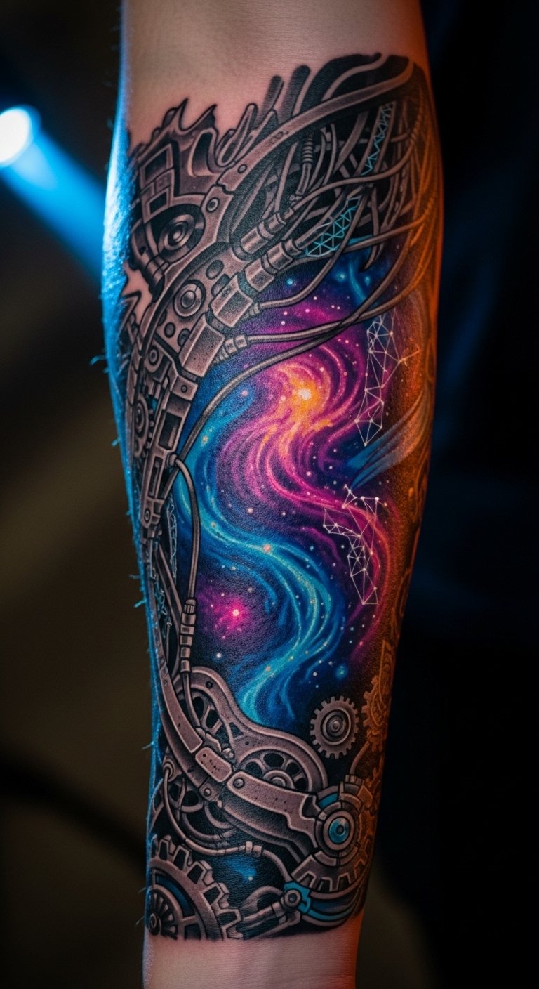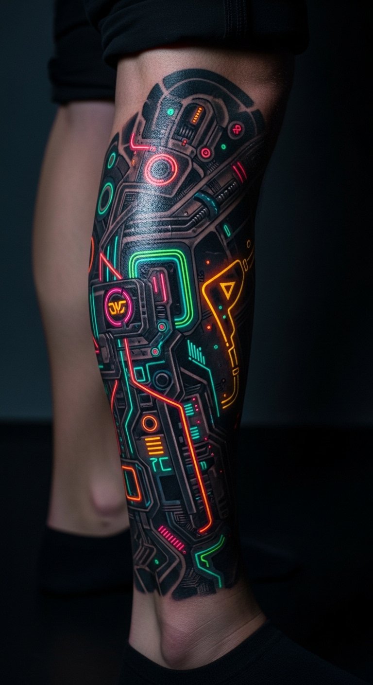 Cyberpunk tattoos bring neon vibes with edgy designs. Think glowing lines on your leg that scream future. They make your style stand out. Draw inspirations using free digital tools on your device. Look for flash sales online starting at $75. Experiment with glow-in-the-dark stickers for home tests. Place on your thigh for visibility. Digital tools make design simple. This practical tip ensures you stay on-trend without much expense.
