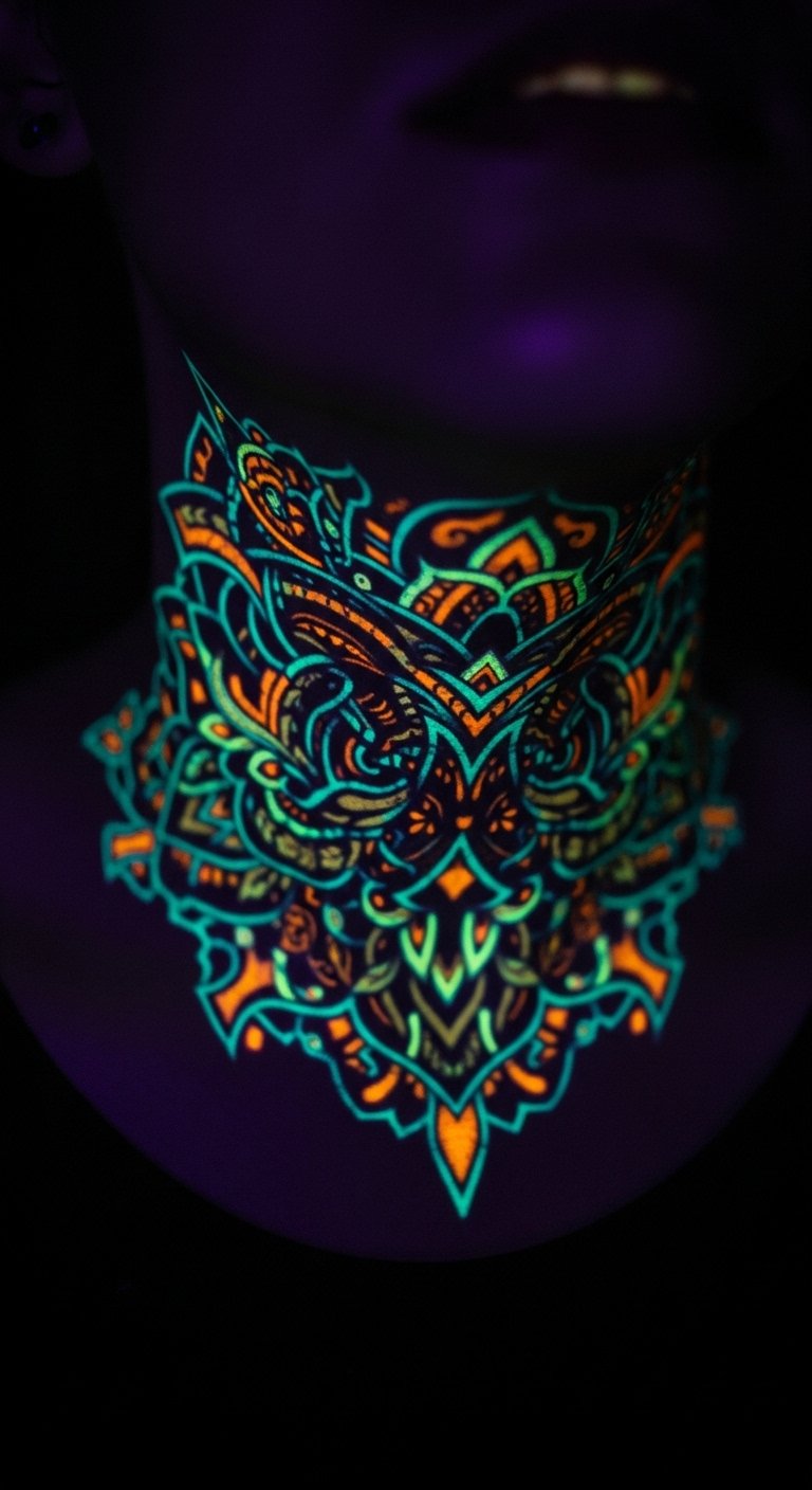 UV ink tattoos shine under lights with secret designs. Imagine hidden symbols on your neck that light up. They bring surprise to your style. Research with phone flashlights to simulate glow at home. Seek out studios with UV specials for $95. Test with UV-reactive stickers from online stores. Hide them on your ankle for fun. Phone flashlights help preview cheaply. This keeps your look exciting and budget-friendly.