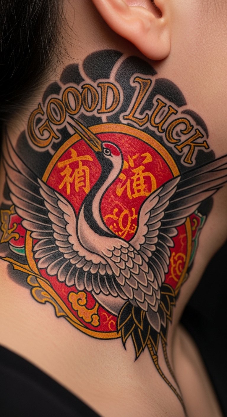 Design a crane that brings good luck and prosperity. Add coins or stars around it. Jot down luck symbols in a journal. Use free apps to combine elements. Artists often do this for $75. Make it unique with your lucky number. Stick on temporaries to decide. Real DIY example: Draw it on a lucky charm and carry it daily. Place on your collarbone for visibility. This one invites positive vibes.